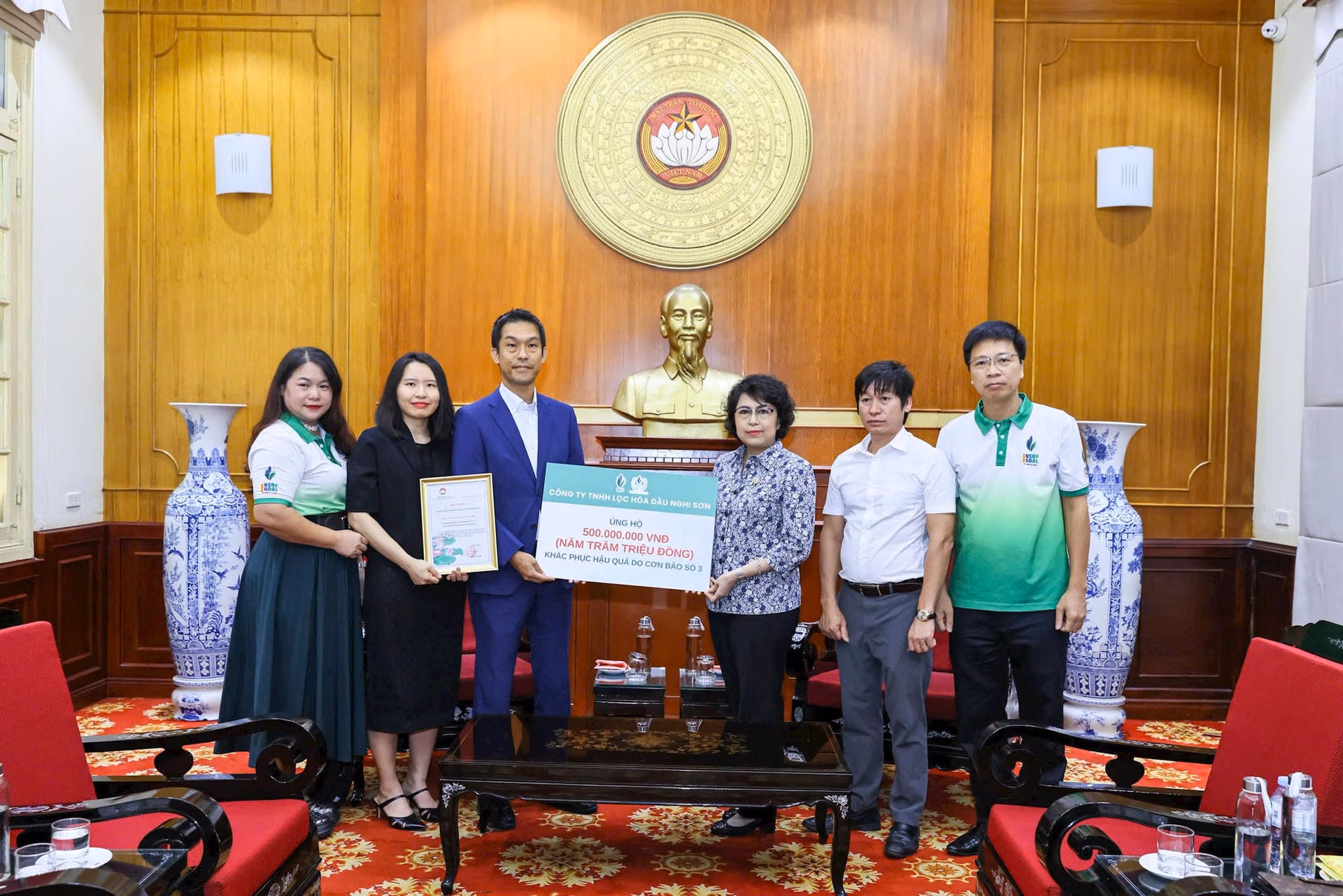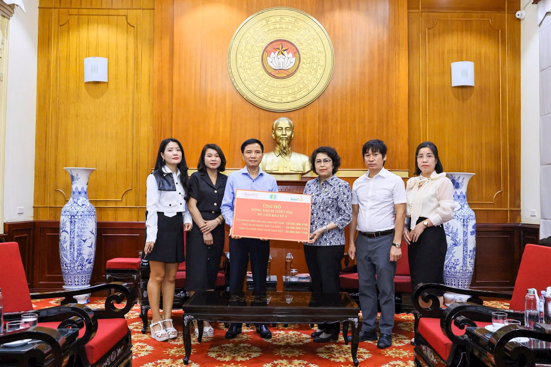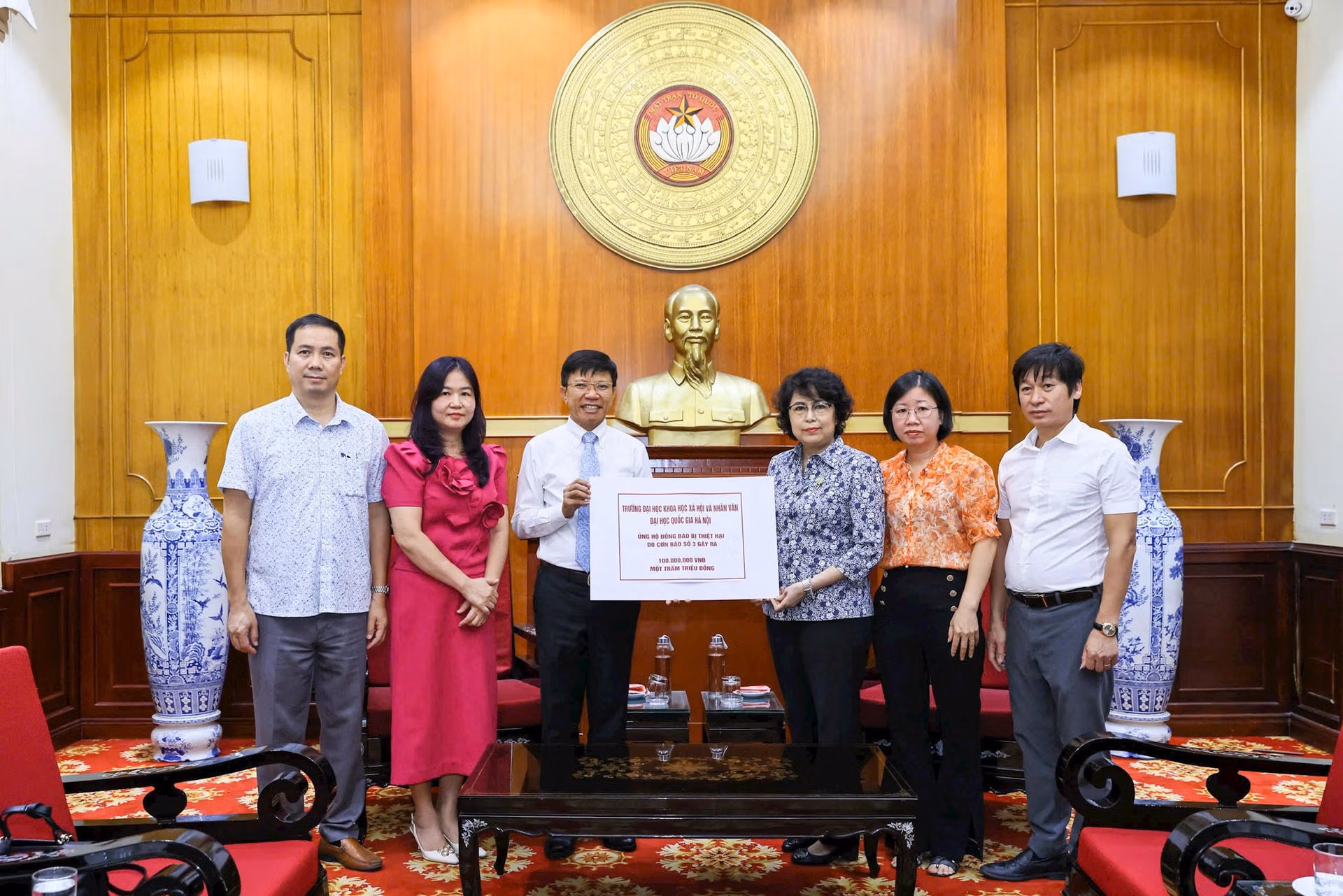 Sáng 16/9, tại Hà Nội, tiếp nhận tiền ủng hộ đồng bào bị thiệt hại do bão lũ từ nhiều đơn vị, tổ chức, cá nhân, Phó Chủ tịch UBTƯ MTTQ Việt Nam Tô Thị Bích Châu cam kết, số tiền ủng hộ sẽ được Ban Vận động Cứu trợ Trung ương phân bổ tới đúng địa chỉ, đúng đối tượng.