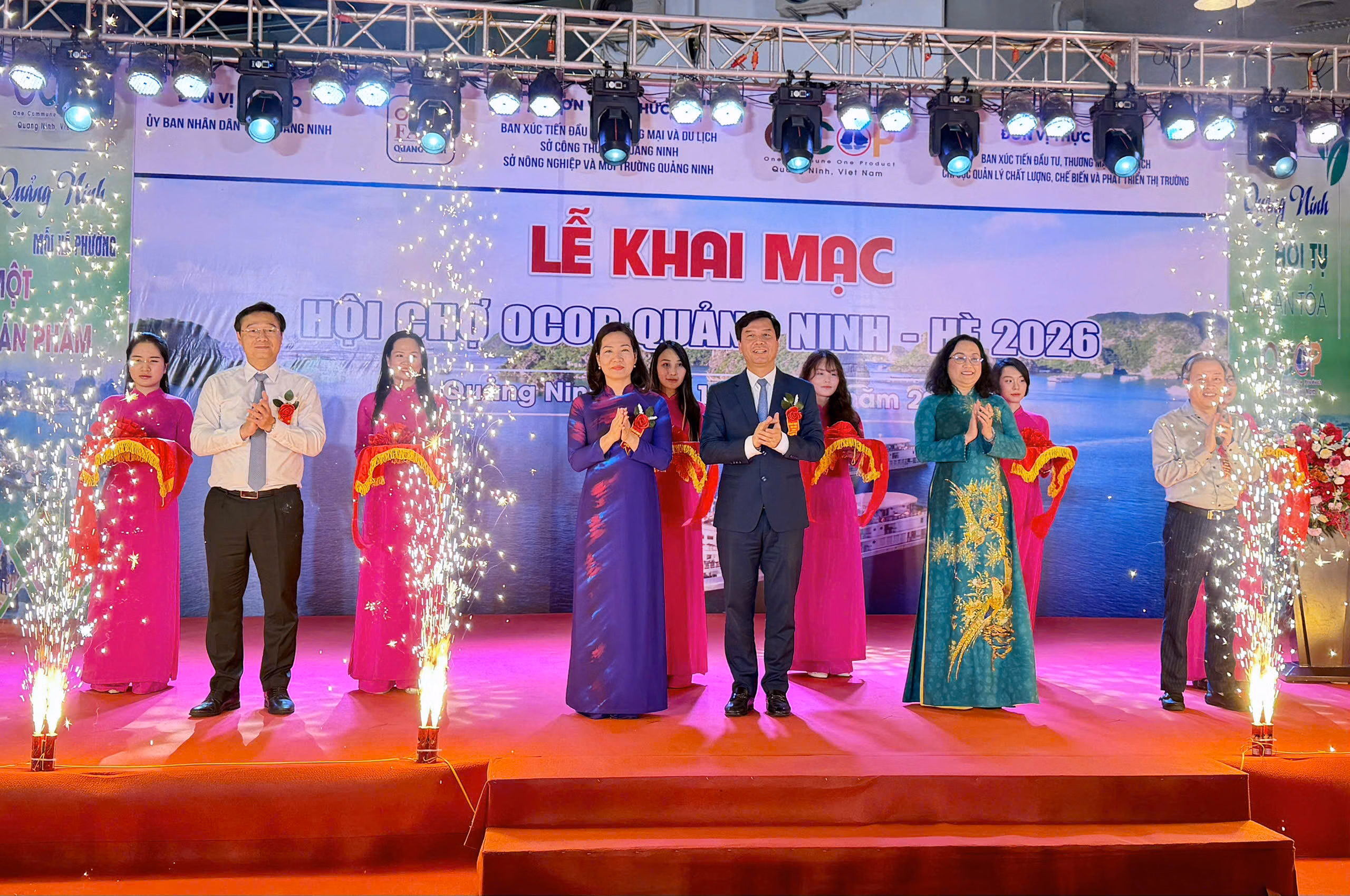 Tối 10/4, Hội chợ OCOP Quảng Ninh – Hè 2026 chính thức được khai mạc tại Cung Quy hoạch, Hội chợ và Triển lãm tỉnh Quảng Ninh, đánh dấu sự khởi động của chuỗi sự kiện Quảng Ninh chào hè năm 2026 với chủ đề “Carnaval Hạ Long 2026 - Kỳ quan bừng sáng trong kỷ nguyên mới”.