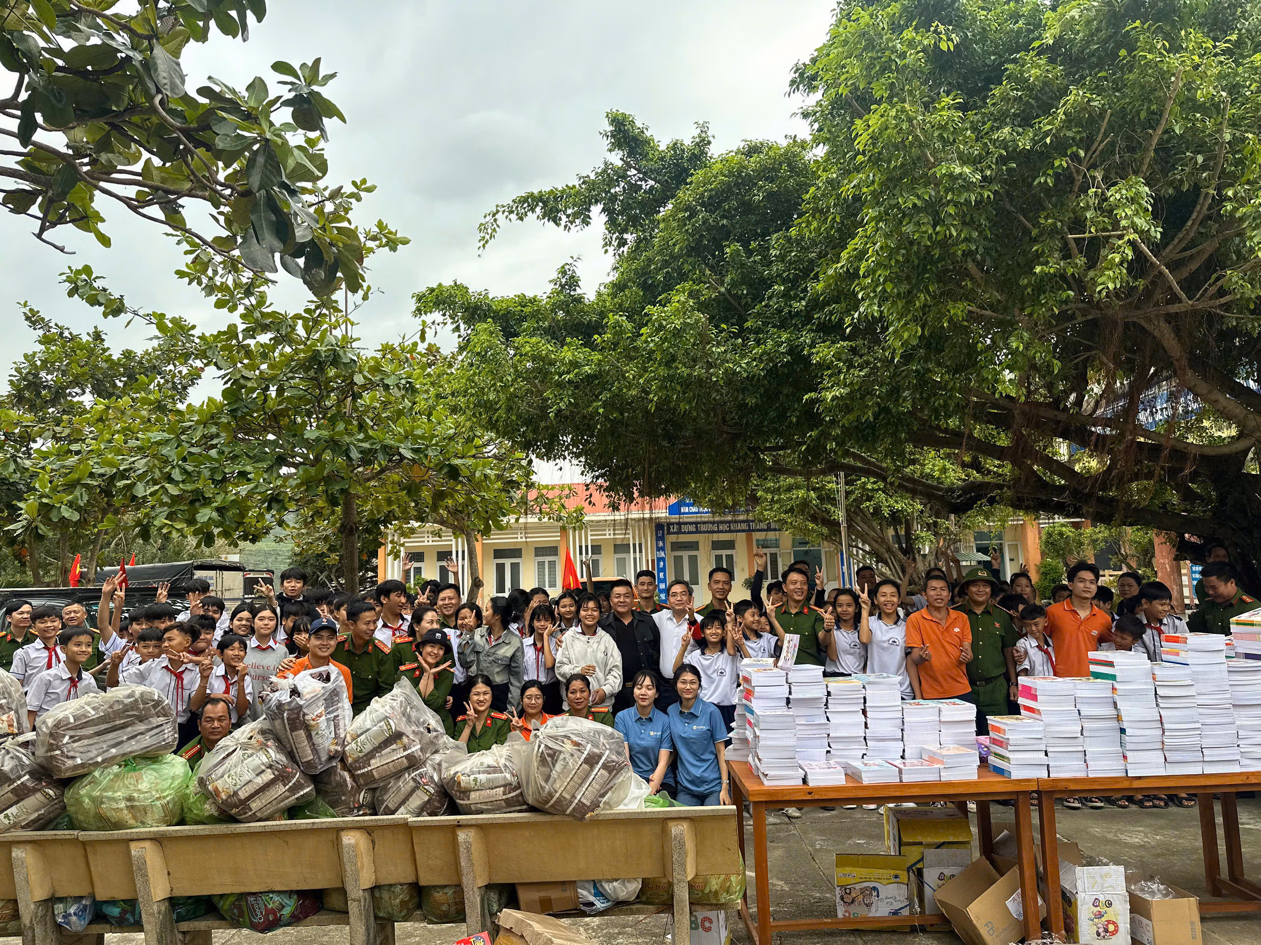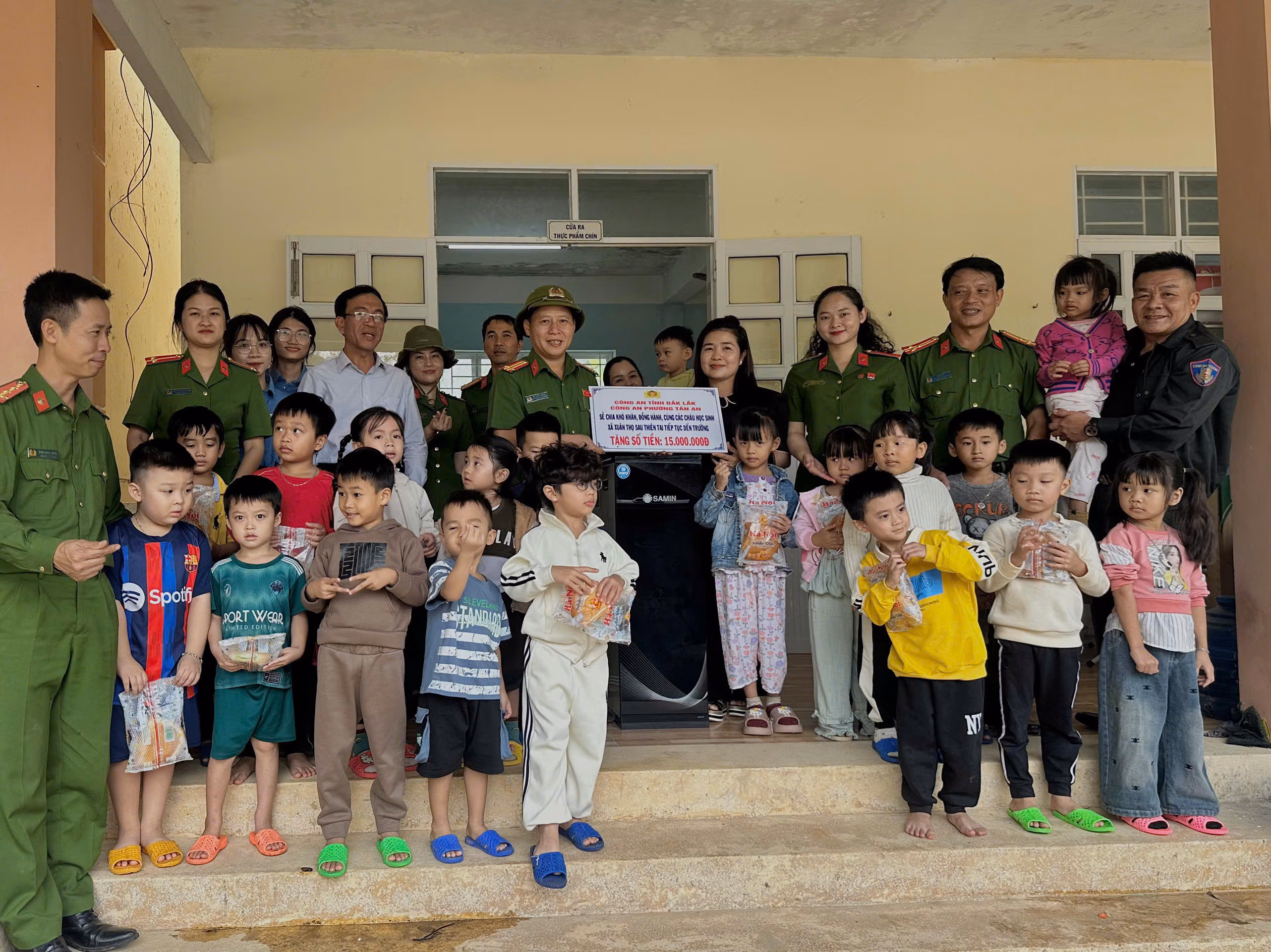 Đặc biệt, đoàn đã dành thời gian ghé thăm hai trường mầm non trên địa bàn, trao tặng đồ dùng học tập, sách vở, chăn màn… giúp các em nhỏ sớm ổn định sinh hoạt, trở lại lớp học sau những ngày nước lũ cuốn trôi nhiều vật dụng. Trong ánh mắt trẻ thơ ngày hôm ấy không chỉ có niềm vui nhận được quà, mà còn là sự ấm áp của tình người giữa những ngày bão lũ đi qua.