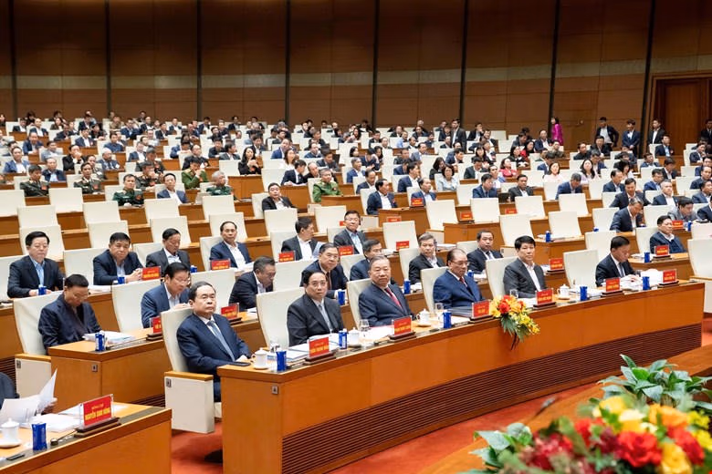 Tham dự tại Hội trường Diên Hồng có: Tổng Bí thư Tô Lâm; nguyên Tổng Bí thư Nông Đức Mạnh; Chủ tịch nước Lương Cường; Thủ tướng Phạm Minh Chính;Chủ tịch Quốc hội Trần Thanh Mẫn, nguyên Chủ tịch Quốc hội Nguyễn Sinh Hùng, nguyên Chủ tịch Quốc hội Nguyễn Thị Kim Ngân;