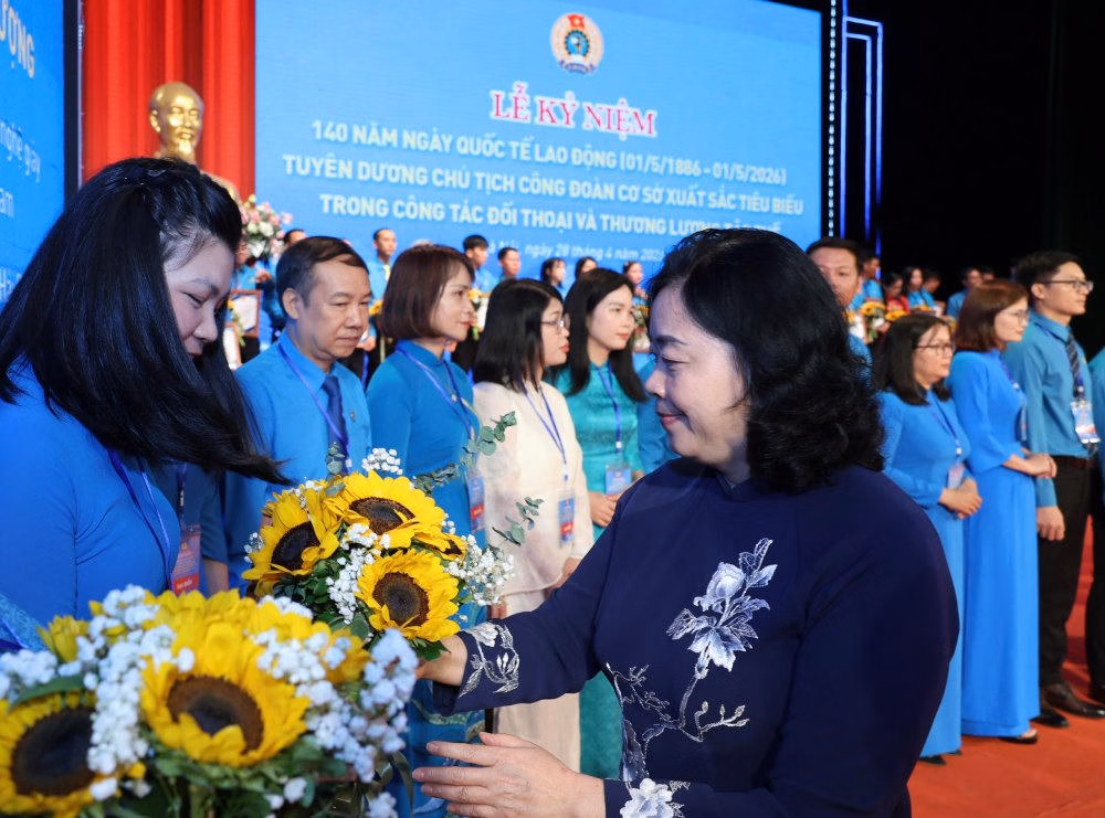 Ngày 28/4, Tổng Liên đoàn Lao động Việt Nam tổ chức trọng thể Lễ kỷ niệm 140 năm Ngày Quốc tế Lao động (1/5/1886 – 1/5/2026) và tuyên dương 101 Chủ tịch Công đoàn cơ sở xuất sắc, tiêu biểu trong công tác đối thoại, thương lượng tập thể.