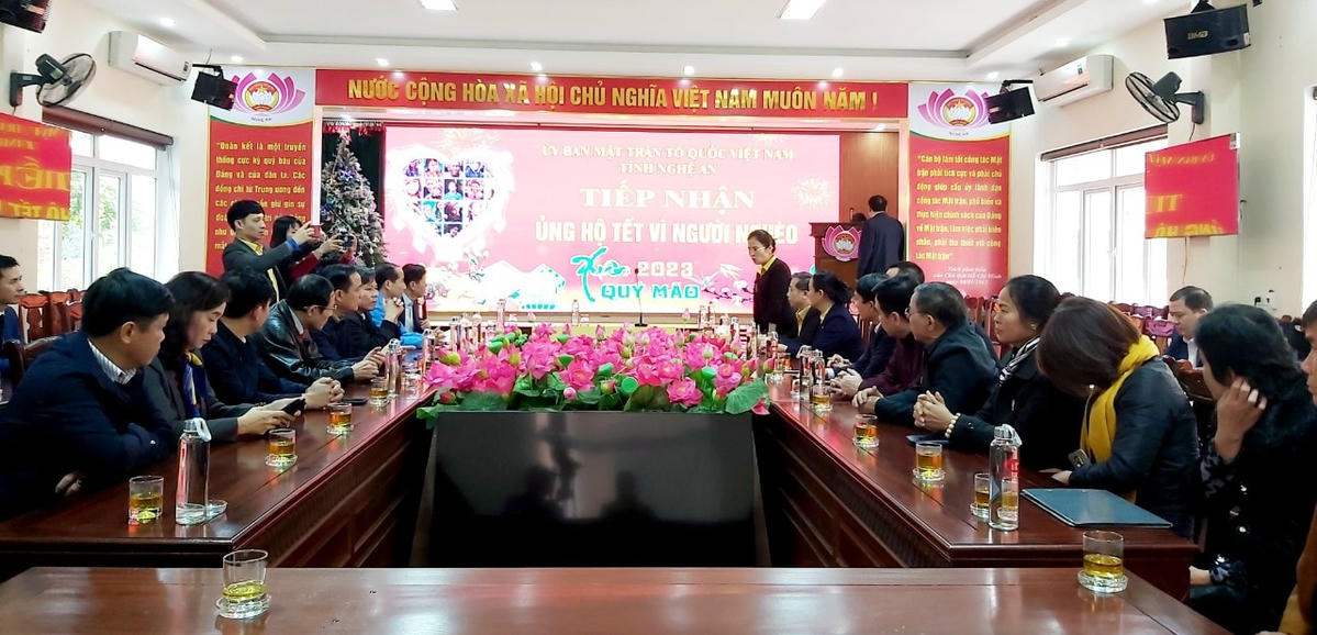 Hưởng ứng Thư kêu gọi của Bí thư Tỉnh uỷ Nghệ An ủng hộ, giúp đỡ người nghèo đón Tết Quý Mão 2023, tính đến chiều ngày 30/12, Ủy ban MTTQ tỉnh Nghệ An đã tiếp nhận hơn 104 tỷ đồng cho chương trình “Tết vì người nghèo – Xuân Quý Mão 2023”.