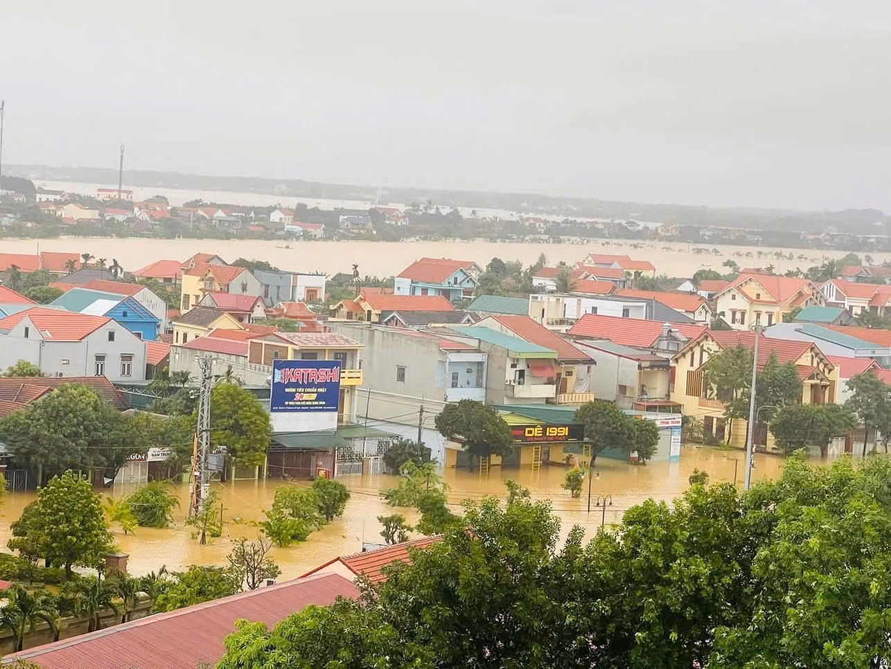 Các đường phố ở Đồng Hới nhiều điểm ngập 0,6m, cá biệt có các tuyến đường ở phường Đồng Phú ngập 1m.