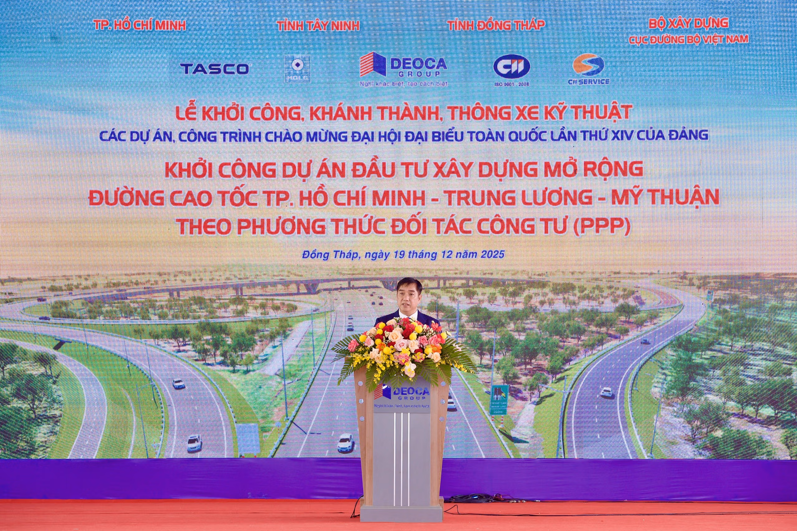 Sáng 19/12, tại tỉnh Đồng Tháp, Bộ Xây dựng đã phối hợp cùng Liên danh nhà đầu tư tổ chức Lễ khởi công Dự án mở rộng đường cao tốc TP Hồ Chí Minh – Trung Lương – Mỹ Thuận theo phương thức đối tác công tư (PPP). Đây là dự án trọng điểm phía Nam đi qua địa bàn TP Hồ Chí Minh, Tây Ninh và Đồng Tháp, cũng là dự án quan trọng nhằm chào mừng Đại hội đại biểu toàn quốc lần thứ XIV của Đảng.