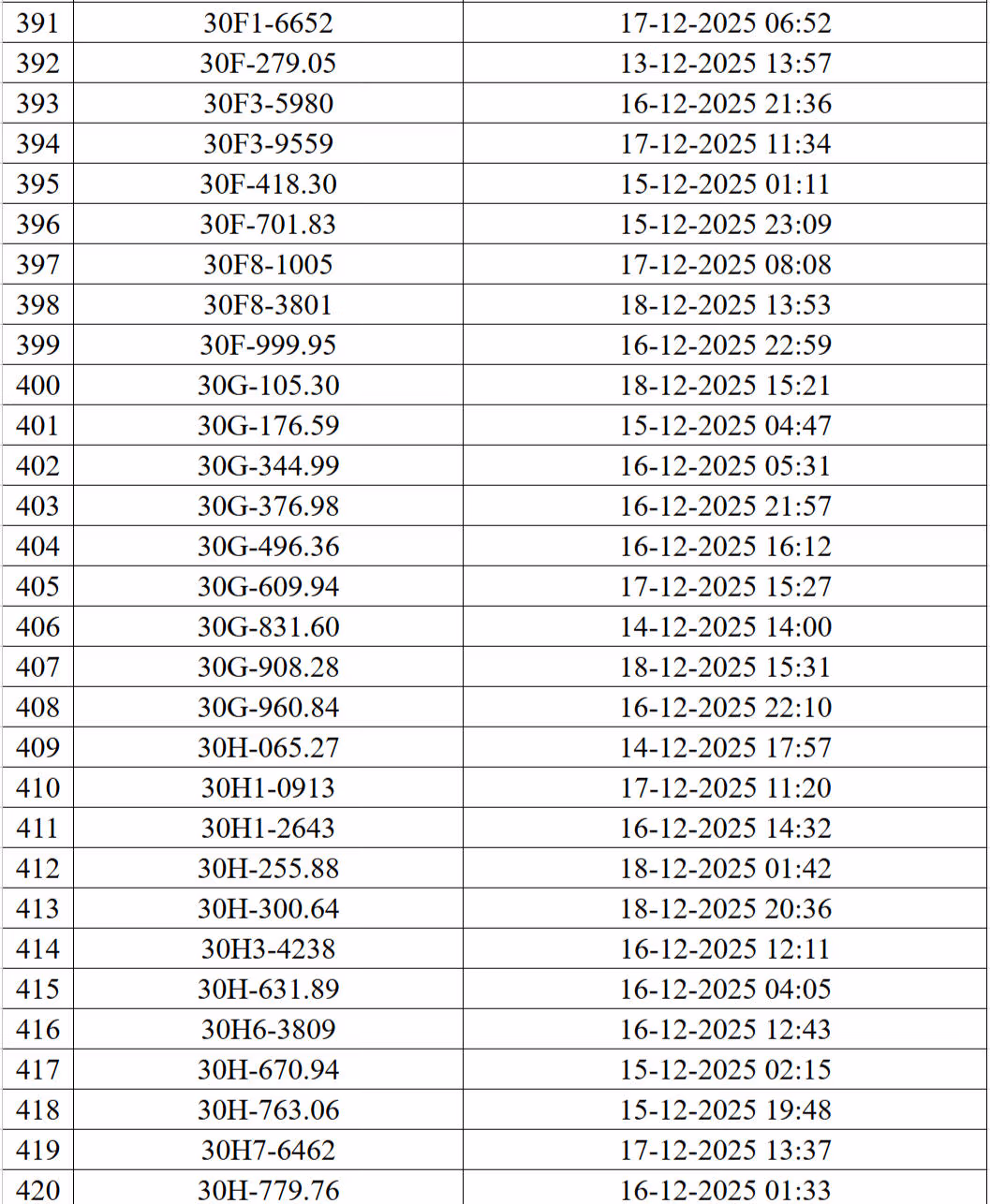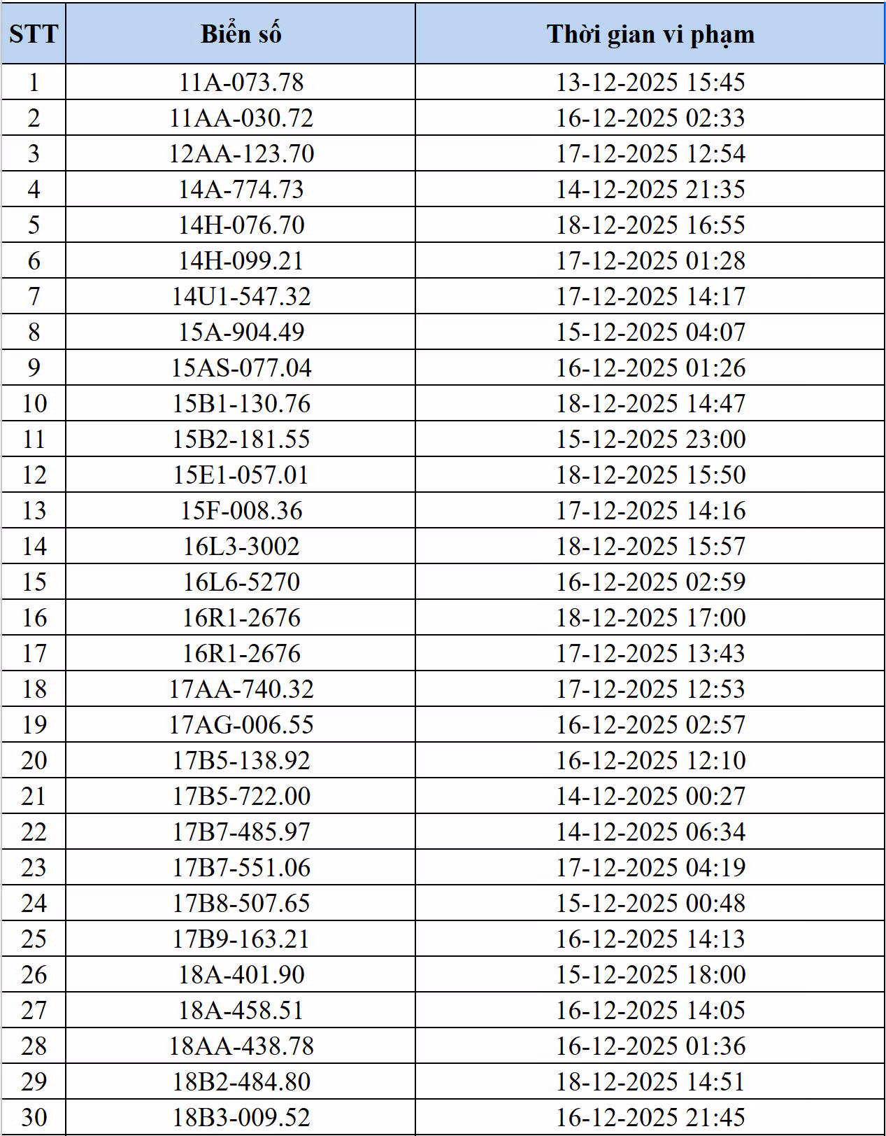 Danh sách phương tiện vi phạm bị Camera AI ghi hìnhL