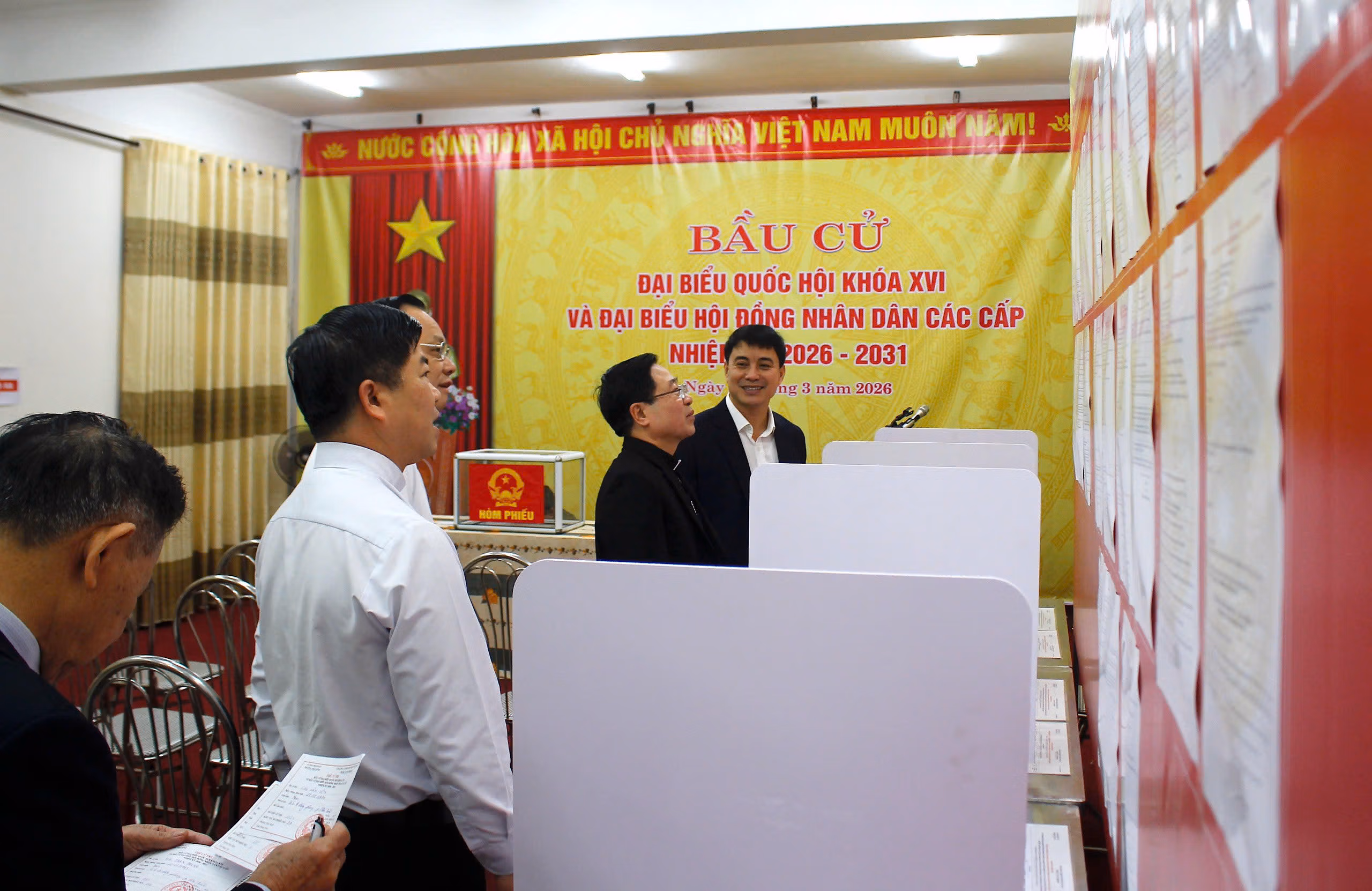 Tại kỳ bầu cử này, các chức sắc, chức việc, các nữ tu thuộc Tòa Giám mục Thái Bình tham gia bỏ phiếu tại Tổ bầu cử số 4, phường Thái Bình, tỉnh Hưng Yên, gần Tòa Giám mục.