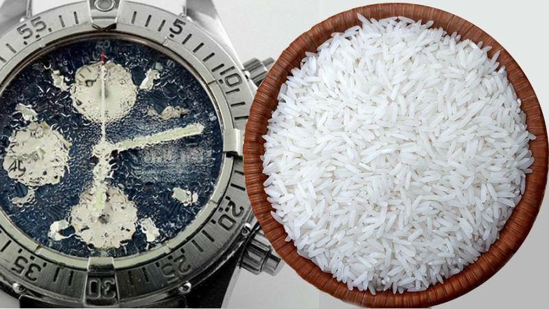 Cách 1: Bỏ đồng hồ vào thùng gạo hoặc gói thuốc hút ẩm