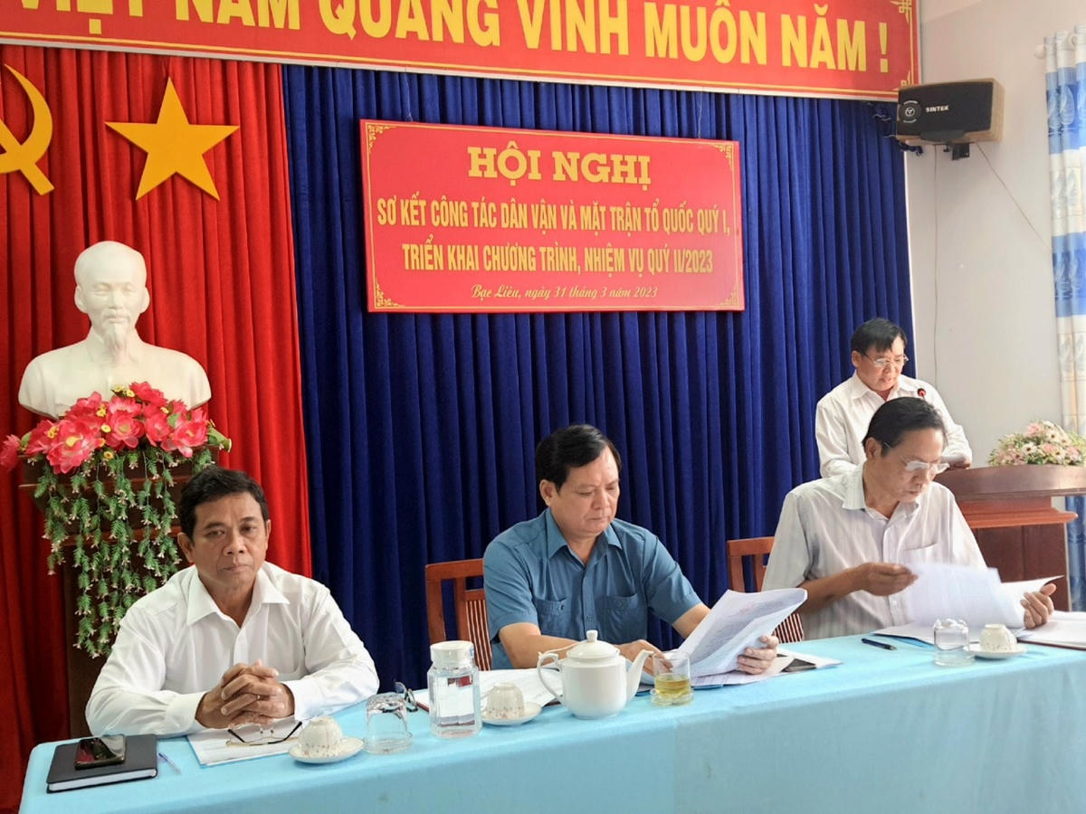 Sáng 31/3, Ủy ban MTTQ Việt Nam tỉnh Bạc Liêu tổ chức Hội nghị sơ kết công tác mặt trận Quý I, triển khai nhiệm vụ trọng tâm trong Quý II/2023. Ông Nguyễn Văn Hoà, Trưởng Ban Dân vận, Chủ tịch UBMTTQ Việt Nam tỉnh chủ trì hội nghị.