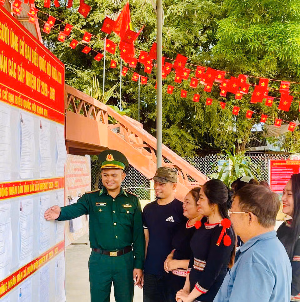 Những ngày cận kề bầu cử, bước chân người lính biên phòng lại càng rộn ràng hơn. Họ cùng chính quyền địa phương đến từng buôn làng tuyên truyền, hướng dẫn bà con thực hiện quyền và nghĩa vụ công dân.