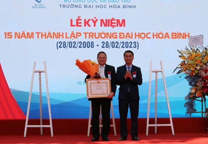 Nhân dịp này, Trường Đại học Hòa Bình vinh dự đón nhận Bằng khen của UBND TP Hà Nội, Hiệp hội các trường đại học và cao đẳng Việt Nam, Hiệp hội các bệnh viện tư nhân.