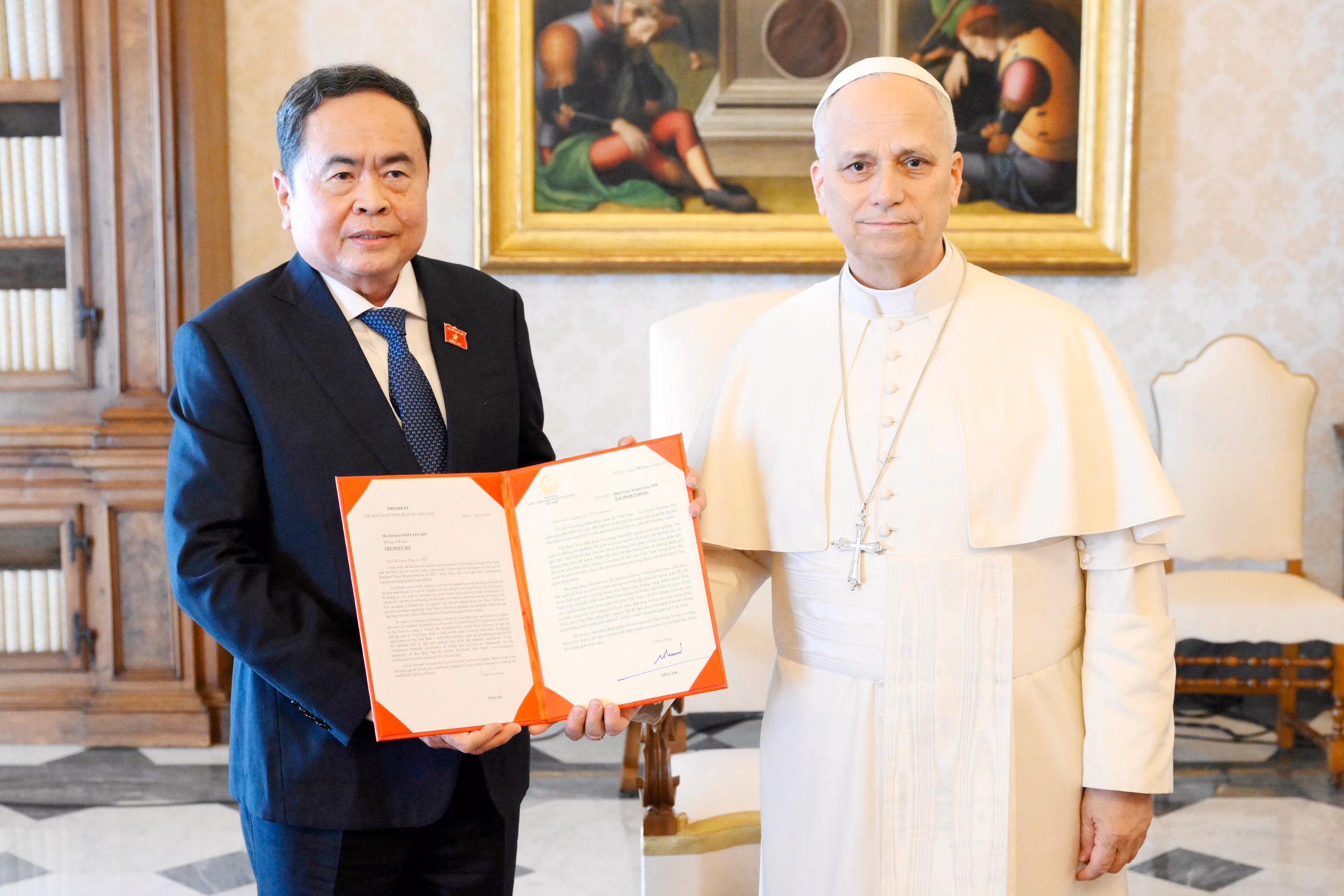 Ngày 11/4, tại Vatican, Chủ tịch Quốc hội Trần Thanh Mẫn đã có cuộc hội kiến với Giáo hoàng Leo XIV.