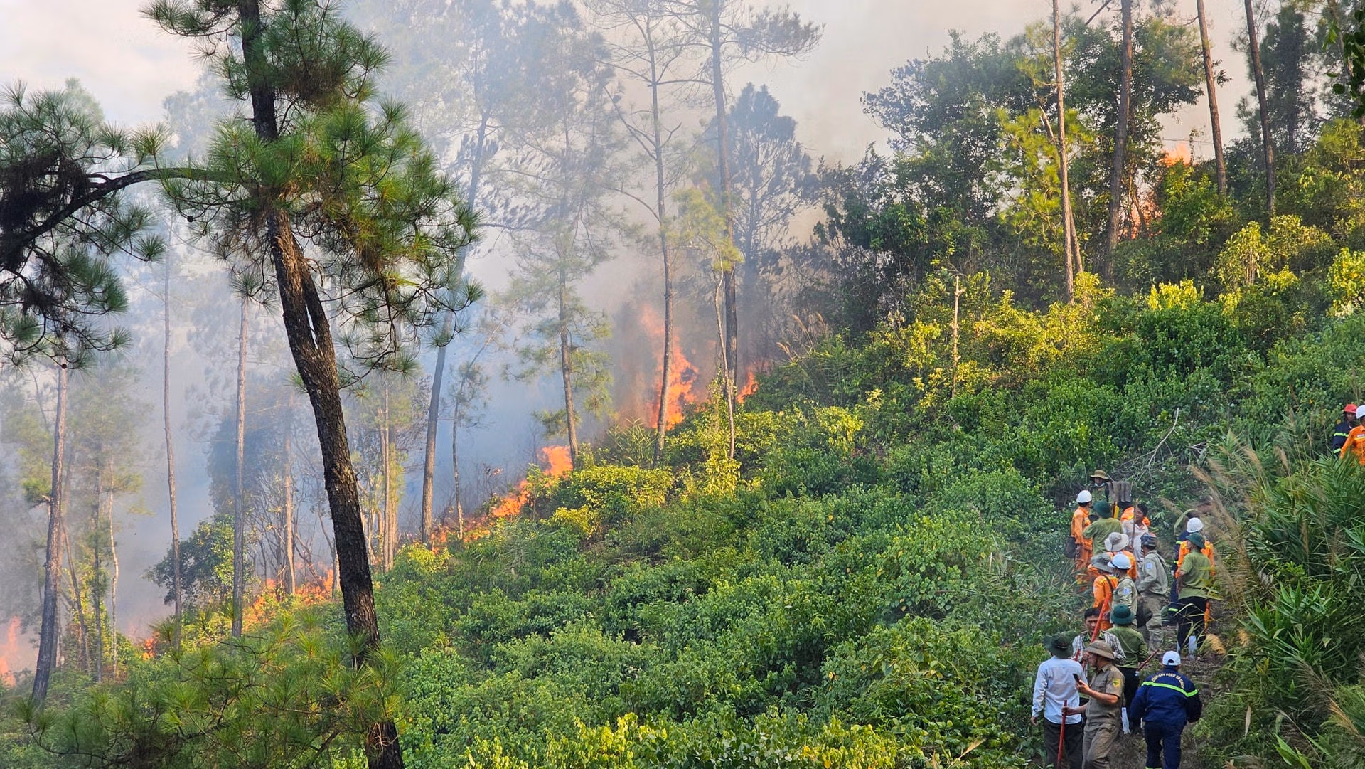 Lực lượng chức năng tỉnh Thừa Thiên Huế vẫn đang nỗ lực khống chế vụ cháy rừng thông ở xã Thủy Bằng, thành phố Huế.