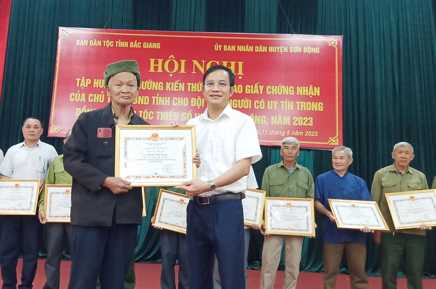 Ban Dân tộc tỉnh Bắc Giang vừa phối hợp với UBND huyện Sơn Động tổ chức hội nghị tập huấn, bồi dưỡng kiến thức và trao giấy chứng nhận của Chủ tịch UBND tỉnh cho đội ngũ người có uy tín trong đồng bào DTTS của tỉnh, giai đoạn 2023 - 2027.