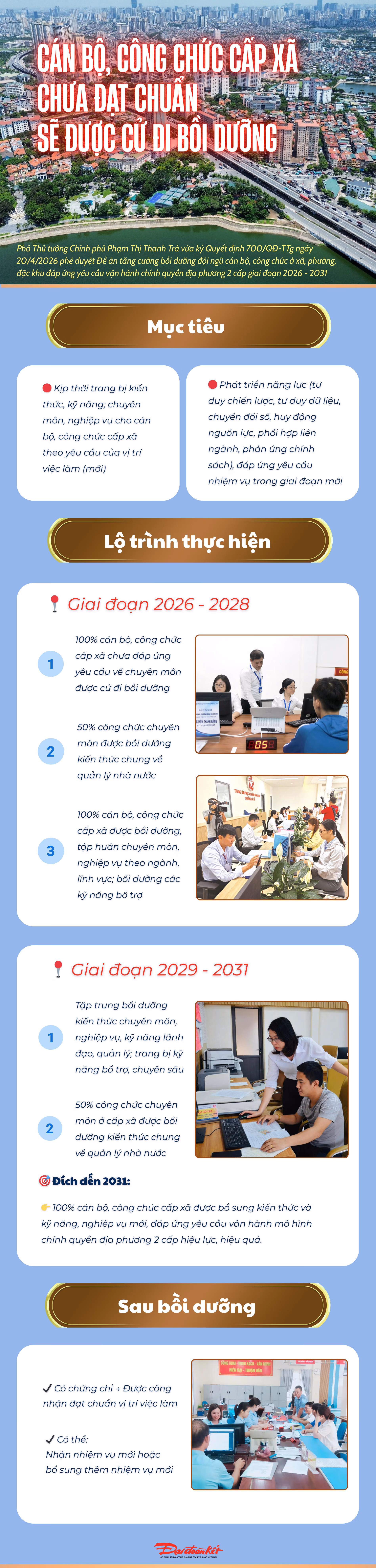 Phó Thủ tướng Chính phủ Phạm Thị Thanh Trà vừa ký Quyết định 700/QĐ-TTg ngày 20/4/2026 phê duyệt Đề án tăng cường bồi dưỡng đội ngũ cán bộ, công chức ở xã, phường, đặc khu đáp ứng yêu cầu vận hành chính quyền địa phương 2 cấp giai đoạn 2026 - 2031.
