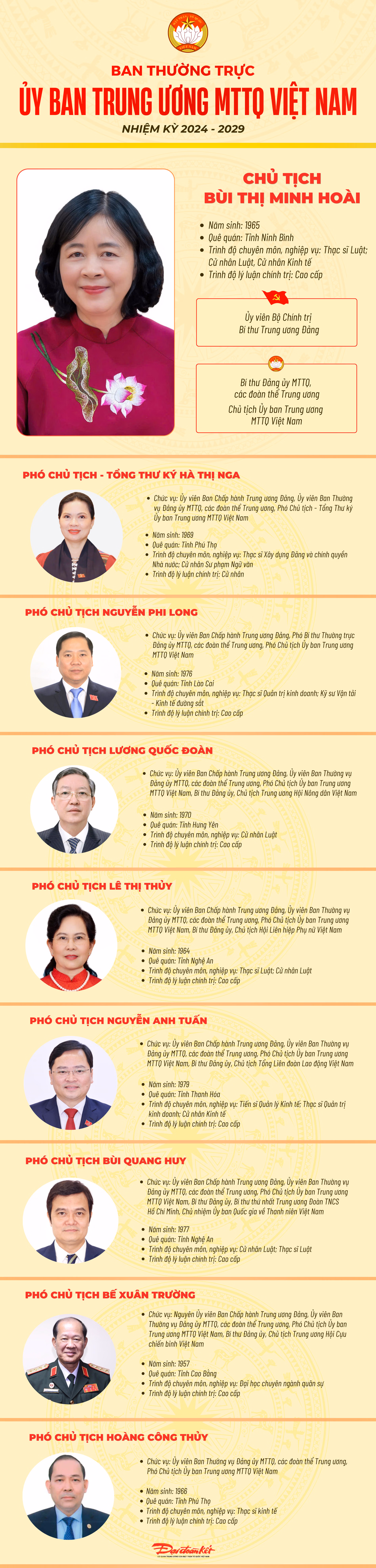 Infographic: Ban Thường trực Ủy ban Trung ương MTTQ Việt Nam nhiệm kỳ 2024 - 2029