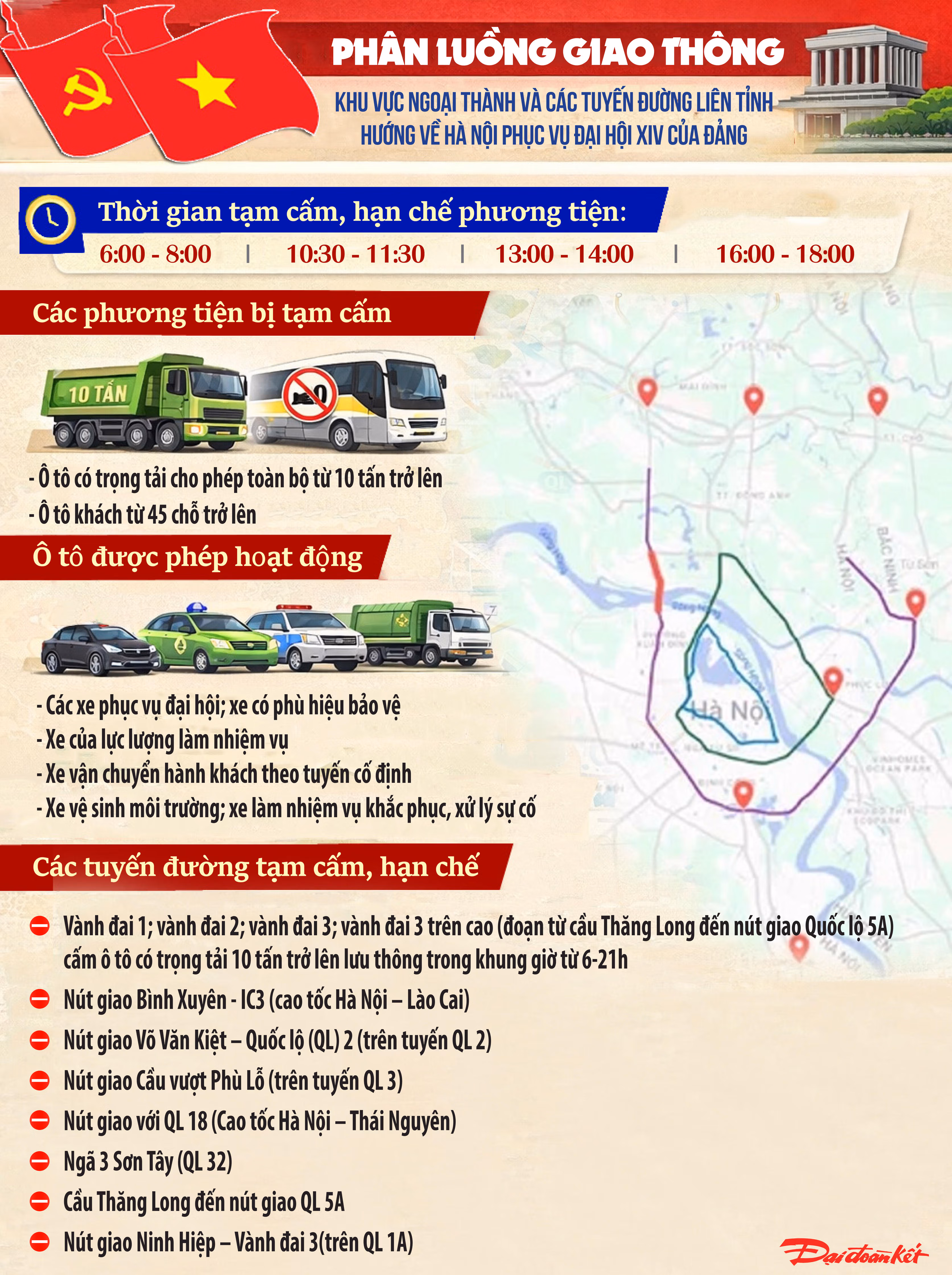 [Infographic] Phân luồng giao thông khu vực ngoại thành và các tuyến đường liên tỉnh hướng về Hà Nội phục vụ Đại hội XIV của Đảng