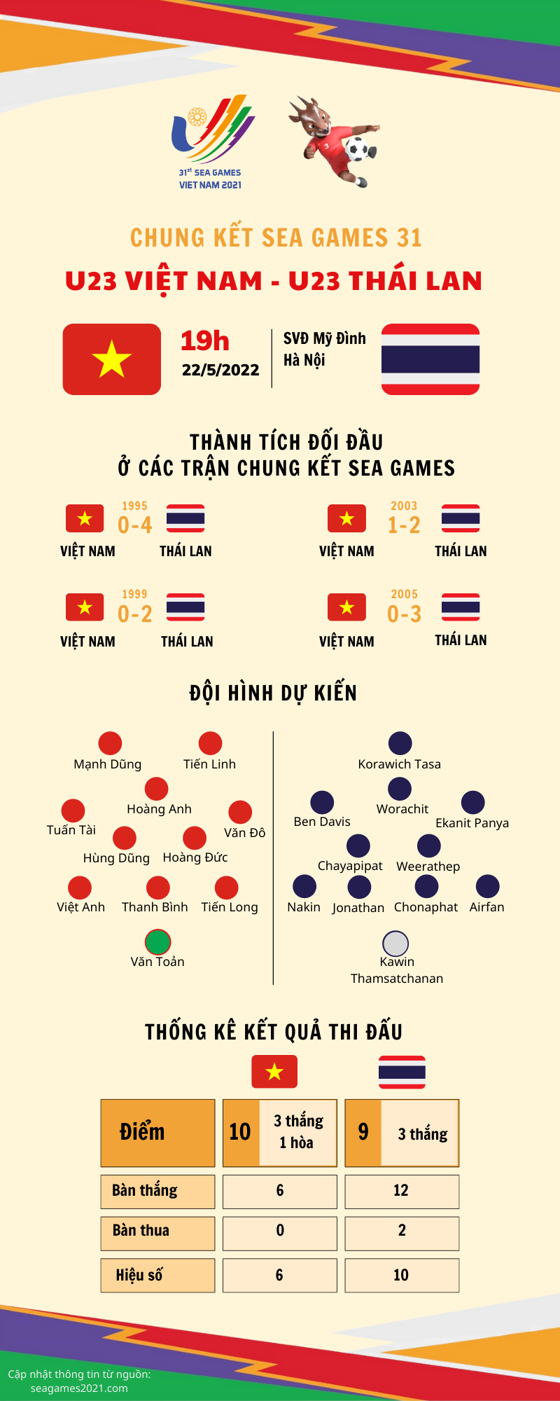 [Infographic] Thông tin trước giờ G: Chung kết U23 Việt Nam và U23 Thái Lan