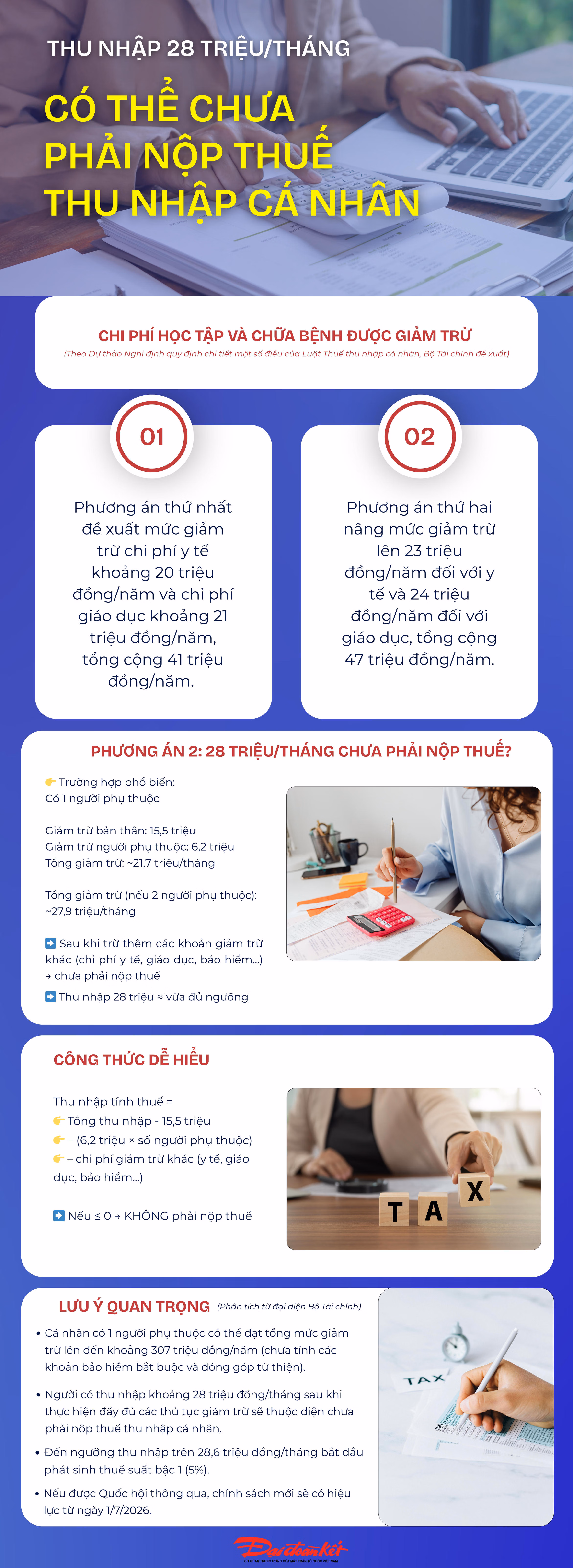 Infographic: Thu nhập 28 triệu đồng/tháng có thể chưa phải nộp thuế thu nhập cá nhân