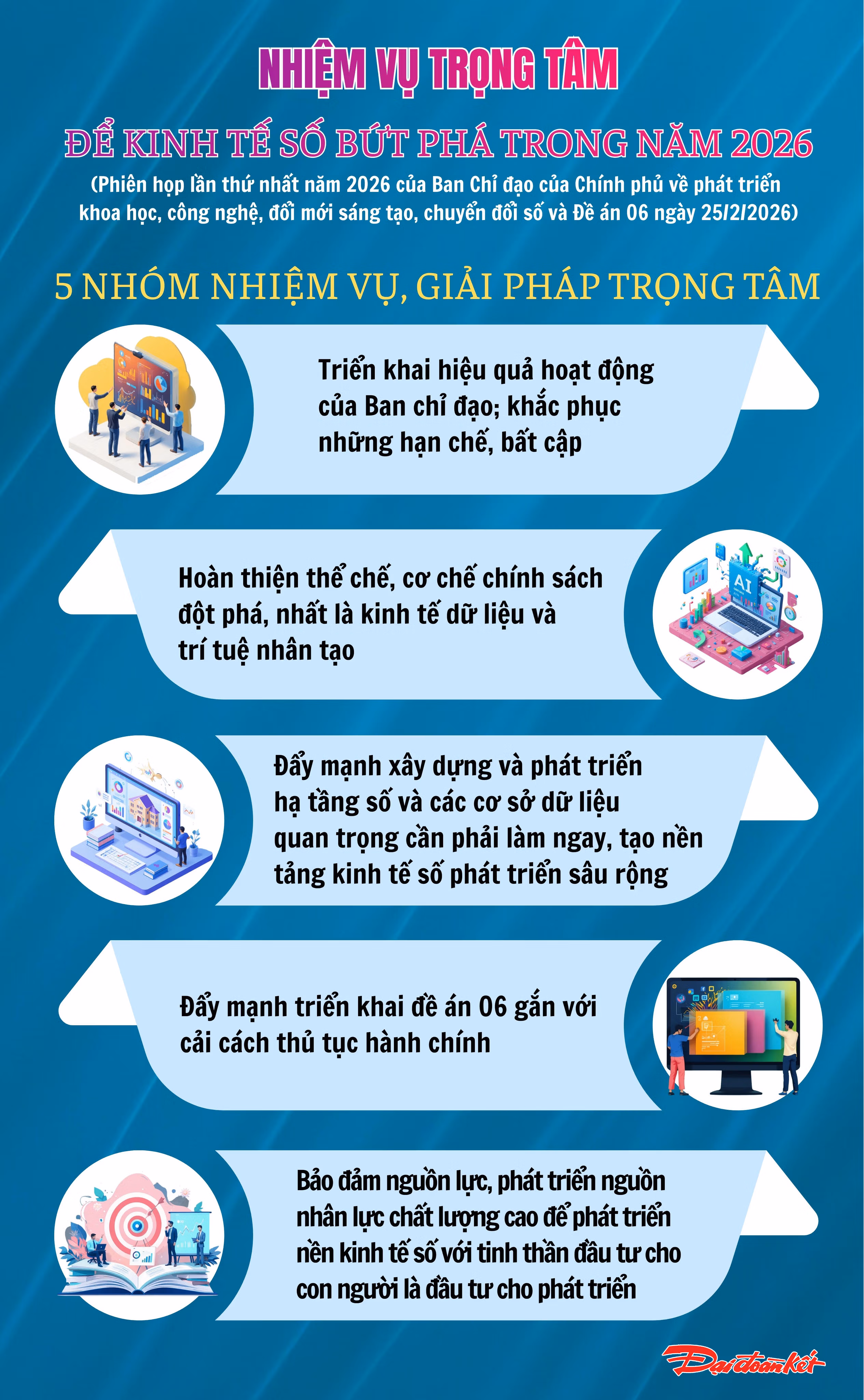 Infographics: Nhiệm vụ trọng tâm để kinh tế số bứt phá trong năm 2026