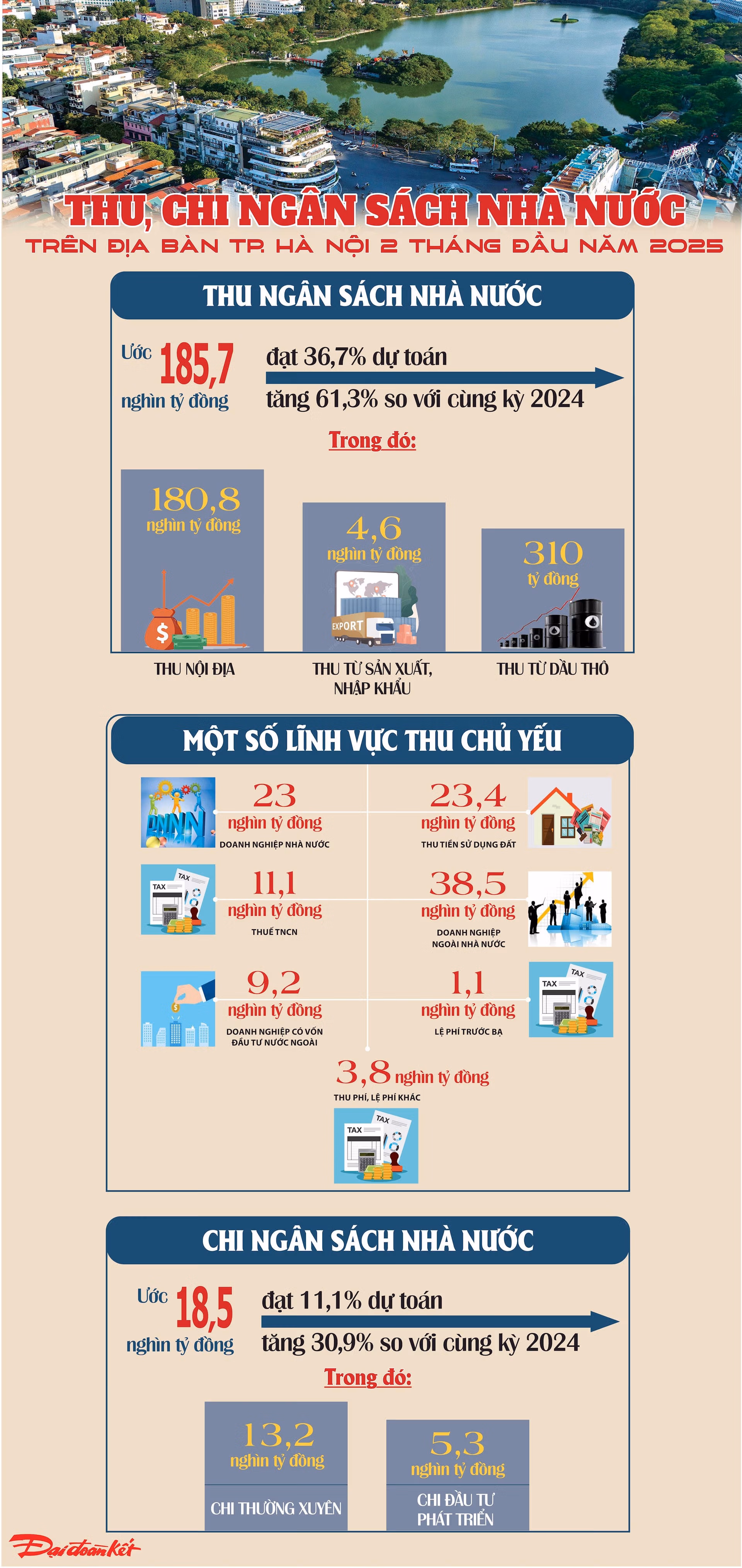 Infographics: Thu, chi ngân sách nhà nước trên địa bàn TP. Hà Nội 2 tháng đầu năm 2025