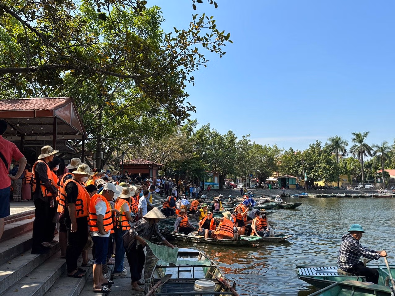 Còn tại KDL sinh thái Tràng An, lượng khách ‘đổ bộ’ đến đây cũng tăng cao trong 2 ngày vừa qua. Từ khu vực bãi đỗ xe, điểm bán vé, đón khách, xuống đò đều có người hướng dẫn, hỗ trợ đem lại sự hài lòng và ấn tượng tốt đẹp của du khách.