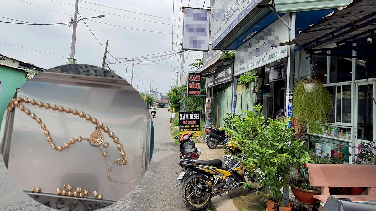 Lúc này, một thanh niên đi xe máy ngược chiều bất ngờ áp sát, giật sợi dây chuyền trên cổ của bà P.. Cú giật mạnh khiến sợi dây chuyền bị đứt, rơi xuống đường. "Ăn hàng" không thành, kẻ cướp rú ga tháo chạy, còn bà P. tri hô...