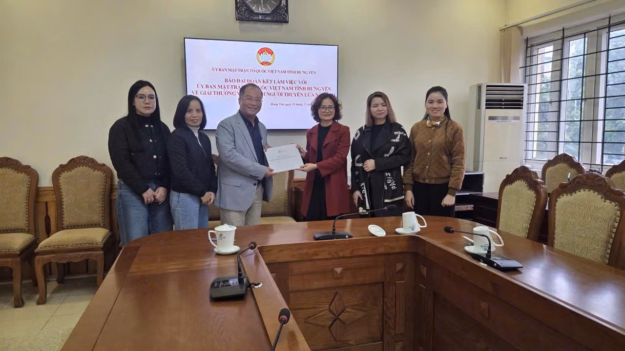 Cũng trong ngày 19/11 vừa qua, Đoàn công tác của Báo Đại đoàn kết do TS Nguyễn Đăng Khang, Phó Tổng Biên tập dẫn đầu đã có buổi làm việc với Ủy ban MTTQ Việt Nam tỉnh Hưng Yên về việc phối hợp triển khai Chương trình “Vinh danh Người truyền lửa”.