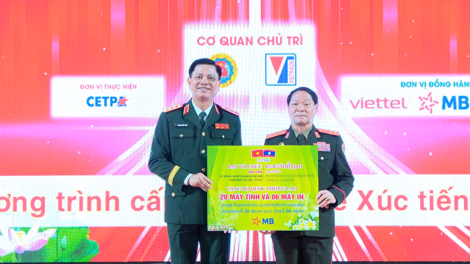 Ngày 20/11, Hội chợ kết nối giao thương và quảng bá sản phẩm doanh nghiệp Việt Nam - Lào năm 2025 chính thức khai mạc. Hội chợ do Bộ Quốc phòng, Bộ Công Thương Việt Nam và Bộ Quốc phòng, Bộ Công Thương Lào phối hợp tổ chức tại Thủ đô Viêng Chăn (Lào).