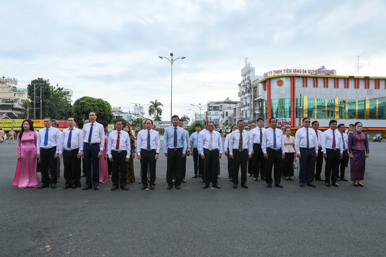 Trong không khí trang nghiêm thành kính, Đoàn đại biểu hai nước tham dự Hội nghị đã dành một phút mặc niệm để tưởng nhớ anh linh Chủ tịch Tôn Đức Thắng, người con ưu tú của Tổ quốc và quê hương An Giang, vị lãnh tụ của giai cấp công nhân, đã hiến dâng trọn đời mình cho sự nghiệp cách mạng của Đảng và dân tộc