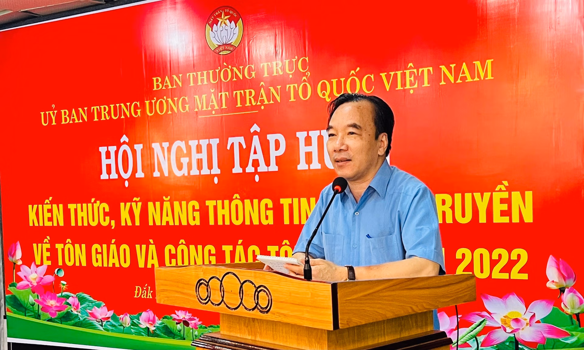 Sáng ngày 11/8 tại TP Buôn Ma Thuột (Đắk Lắk), Ban thường trực UBTƯ MTTQ Việt Nam đã tổ chức Hội nghị tập huấn kiến thức, kỹ năng thông tin, tuyên truyền về tôn giáo và công tác tôn giáo năm 2022. Ông Ngô Sách Thực, Phó Chủ tịch UBTƯ MTTQ Việt Nam chủ trì Hội nghị.