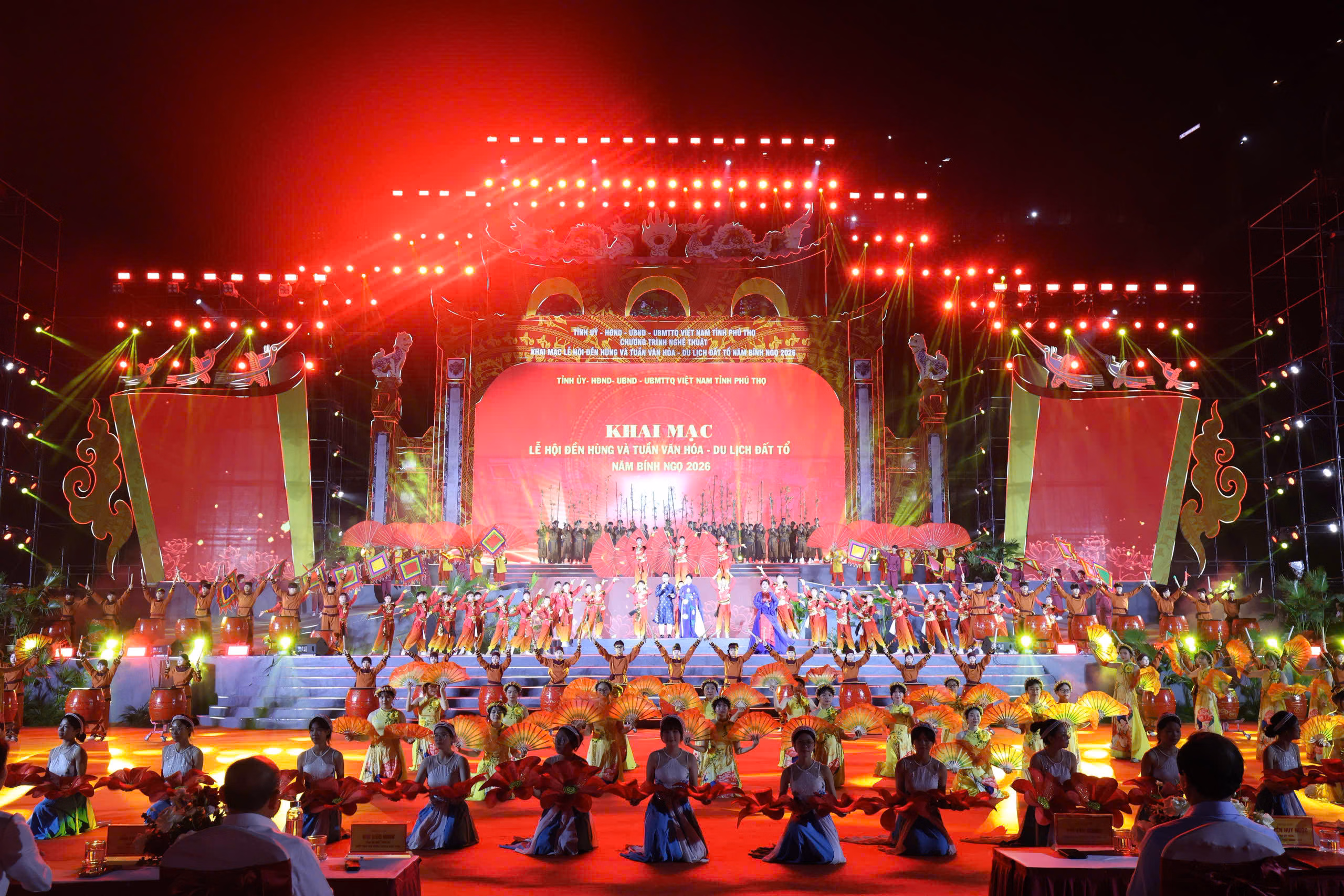Lễ hội Đền Hùng và Tuần Văn hóa - Du lịch Đất Tổ năm Bính Ngọ 2026 diễn ra từ ngày 17 - 26/4/2025. Trong đó, Chương trình nghệ thuật “Linh thiêng nguồn cội - Đất Tổ Hùng Vương” là điểm nhấn quan trọng với sự tham gia của gần 500 nghệ nhân, nghệ sĩ, ca sĩ, diễn viên của Trung ương và của tỉnh Phú Thọ. Chương trình nghệ thuật chia thành 3 chương: Linh thiêng nguồn cội; Về miền di sản; Phú Thọ vươn mình cùng đất nước.