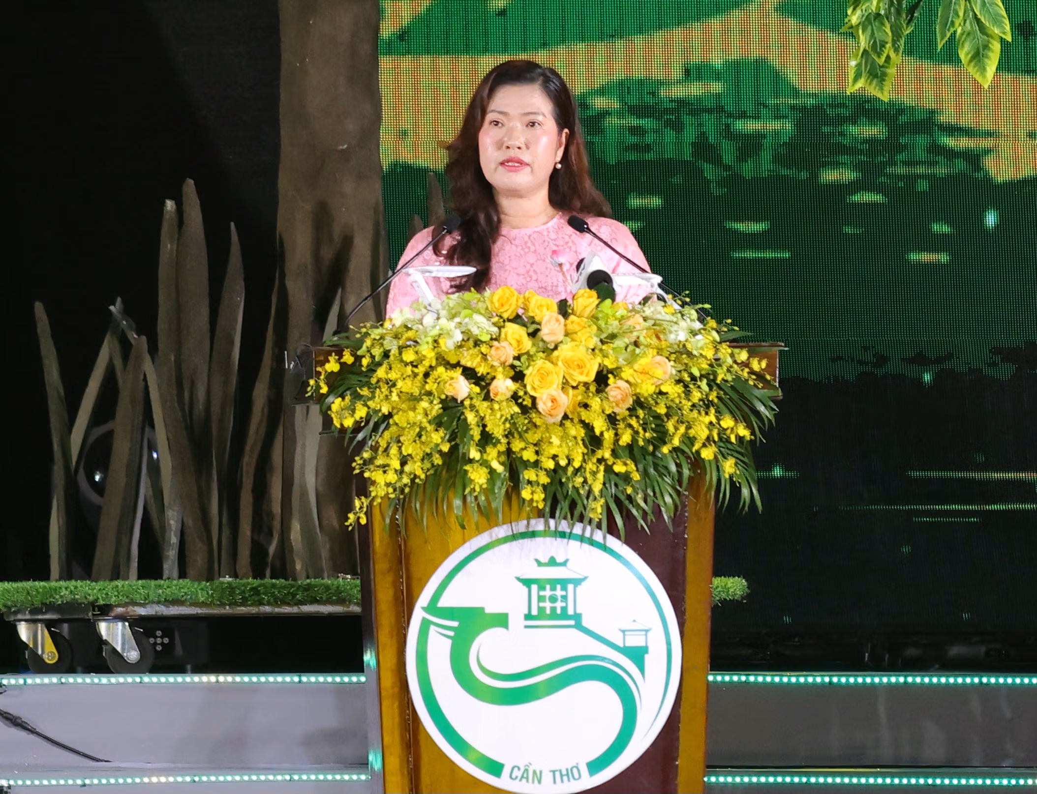 Đặc biệt là Chương trình nghệ thuật khai mạc đặc sắc tối đêm nay, với sân khấu thực cảnh sống động, tái hiện đời sống sinh kế của người dân và không gian sông nước Cần Thơ; nhịp sống trên bến - dưới thuyền mộc mạc bao đời, nơi giao thương, ẩm thực và du lịch hòa chung một nhịp thở”, bà Nguyễn Thị Ngọc Điệp - Phó Chủ tịch UBND TP Cần Thơ phát biểu tại lễ khai mạc.
