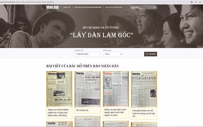 Trên nền tảng công nghệ hiện đại, thiết kế trang trọng, trực quan, Trang thông tin đã số hóa kho tư liệu đặc biệt với hơn 1.000 bài viết của Chủ tịch Hồ Chí Minh đăng trên Báo Nhân Dân từ năm 1951 đến 1969, qua đó giúp độc giả có thể trải nghiệm chân thực các bài báo gốc mang tính lịch sử từ hơn nửa thế kỷ trước.