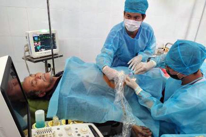 Sau khi tiếp nhận bệnh nhân, các y, bác sĩ Bệnh xá đảo Song Tử Tây đã thăm khám và siêu âm, phát hiện bệnh nhân có khối bất thường hố chậu phải, kích thước 12cm x 6cm, chẩn đoán bệnh nhân bị áp xe ruột thừa và đã điều trị: dùng kháng sinh mạnh đường tĩnh mạch, theo dõi sát tình trạng bụng, chọc hút bớt 30 ml ổ áp xe dưới siêu âm cho bệnh nhân.