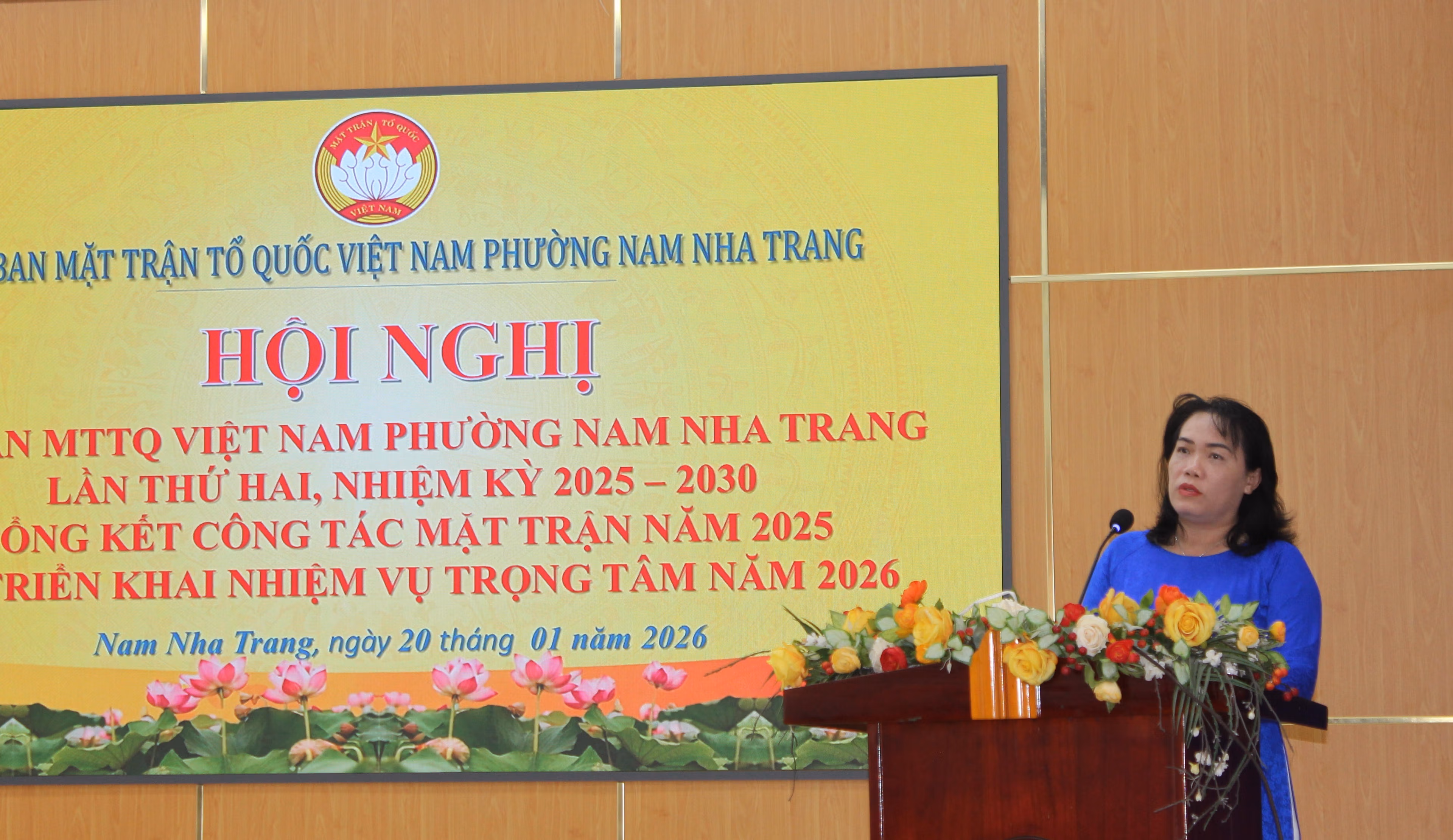 Chiều 20/1, Ủy ban MTTQ Việt Nam phường Nam Nha Trang (tỉnh Khánh Hòa) tổ chức hội nghị tổng kết công tác mặt trận năm 2025 và triển khai nhiệm vụ trọng tâm năm 2026.