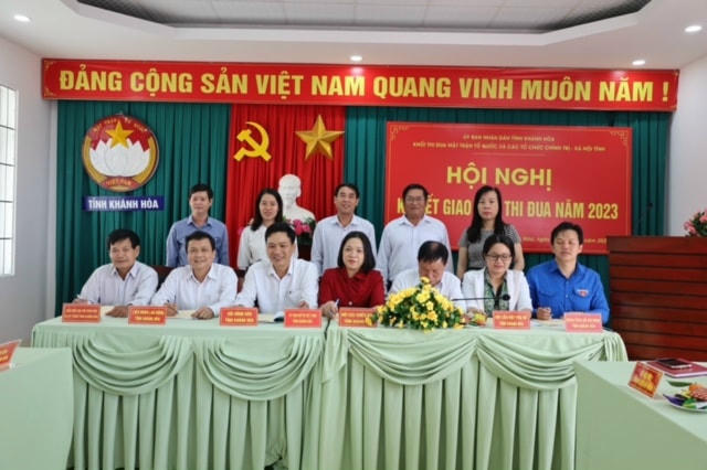 Ngày 15/2, Khối thi đua Mặt trận tổ quốc (MTTQ) và các tổ chức Chính trị – Xã hội đã tổ chức hội nghị ký kết giao ước thi đua năm 2023. Bao gồm: Ủy ban Mặt trận tổ quốc tỉnh Khánh Hòa, Đoàn Thanh niên cộng sản Hồ Chí Minh, Hội Nông dân, Liên đoàn Lao động, Hội Cựu chiến binh, Hội Liên hiệp Phụ nữ và Liên hiệp các hội khoa học kỹ thuật.