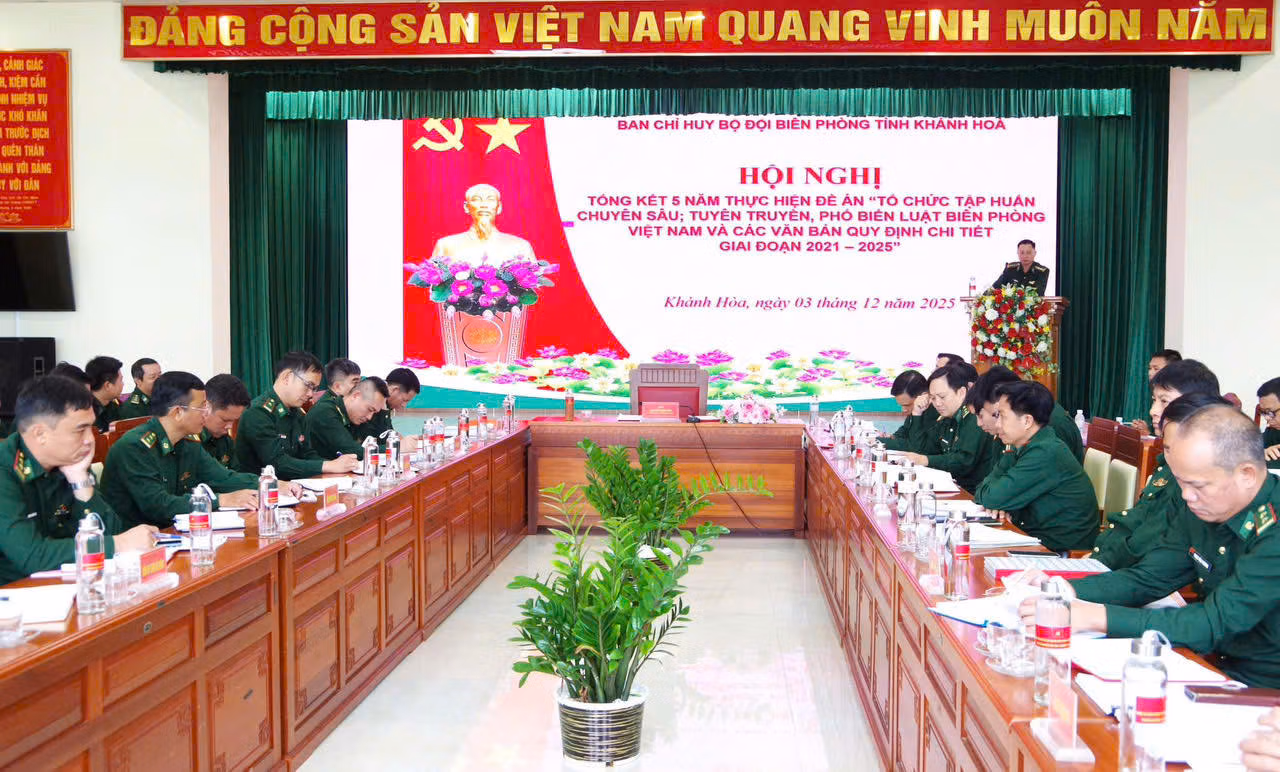 Sáng 3/12, Ban Chỉ huy Bộ đội Biên phòng (BĐBP) tỉnh Khánh Hòa tổ chức hội nghị tổng kết 5 năm thực hiện Đề án “Tổ chức tập huấn chuyên sâu tuyên truyền, phổ biến Luật Biên phòng Việt Nam giai đoạn 2021–2025”.