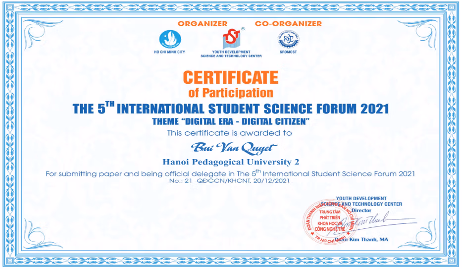 Với sự năng động sáng tạo và hội nhập, sinh viên Khoa GDTC đã tham dự nhiều hội thảo khoa học trong và ngoài nước. Tiêu biểu như sinh viên Bùi Văn Quyết - K44 GDTC được chọn là “Đại biểu chính thức của diễn đàn khoa học sinh viên Quốc tế năm 2021”, tham dự và có bài đăng trong kỷ yếu Hội thảo khoa học sinh viên thường niên năm học 2020-2021 do Đại học Giáo Dục - Đại học Quốc Gia Hà Nội tổ chức.