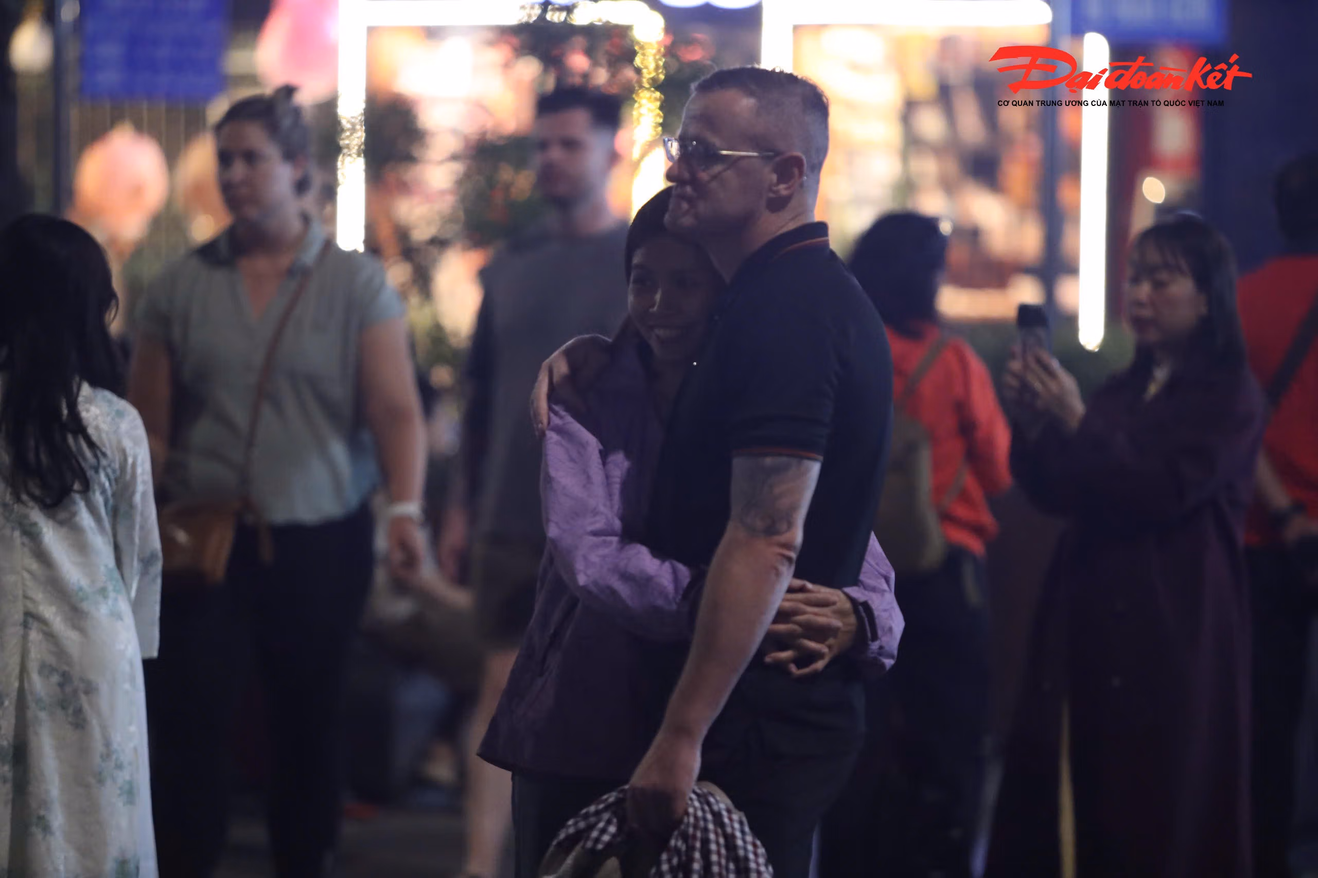 Không chỉ các cặp đôi trẻ, nhiều gia đình cũng quây quần bên nhau, cha mẹ hôn nhẹ lên trán con, ông bà siết chặt tay cháu nhỏ. Những nụ hôn ấy không chỉ là biểu hiện của tình yêu đôi lứa mà còn là sự gắn kết gia đình, là lời chúc bình an và lời hứa về một năm mới đủ đầy.