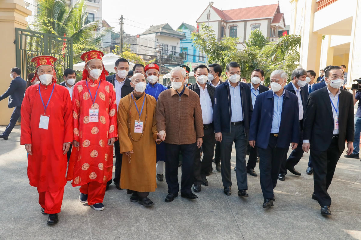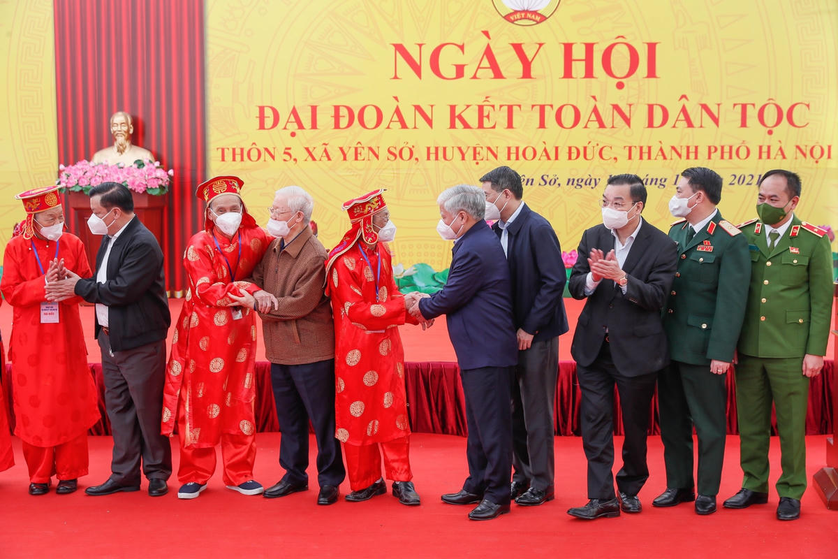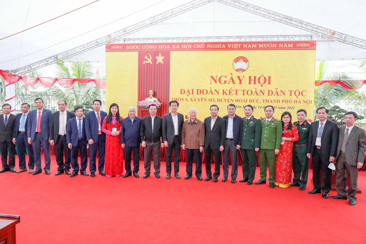 Nhân kỷ niệm 91 năm Ngày thành lập Mặt trận Dân tộc thống nhất Việt Nam - Ngày truyền thống MTTQ Việt Nam (18/11/1930 - 18/11/2021), sáng 14/11, Tổng Bí thư Nguyễn Phú Trọng dự và chung vui Ngày hội Đại đoàn kết toàn dân tộc với nhân dân thôn 5, xã Yên Sở, huyện Hoài Đức, thành phố Hà Nội.