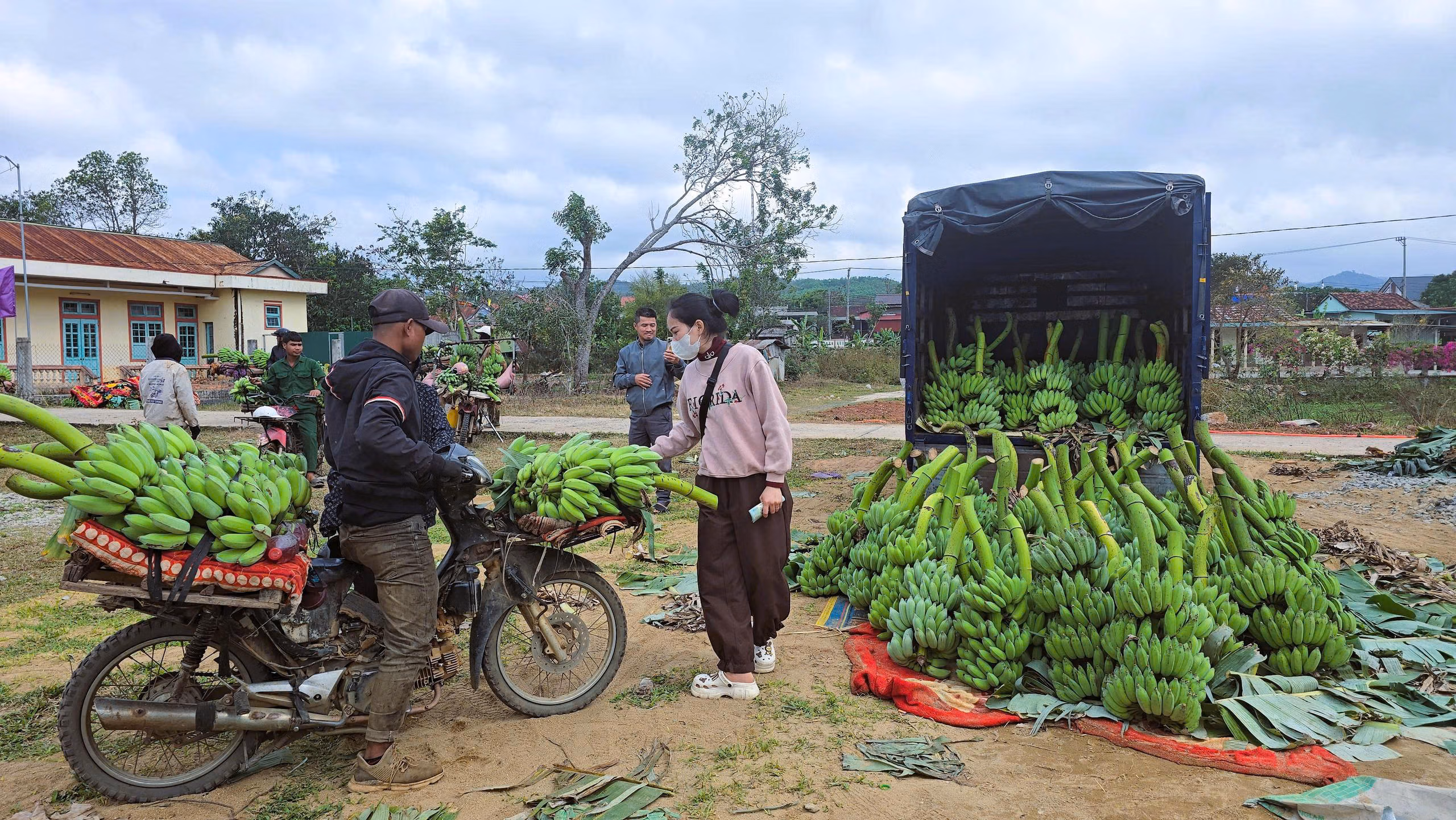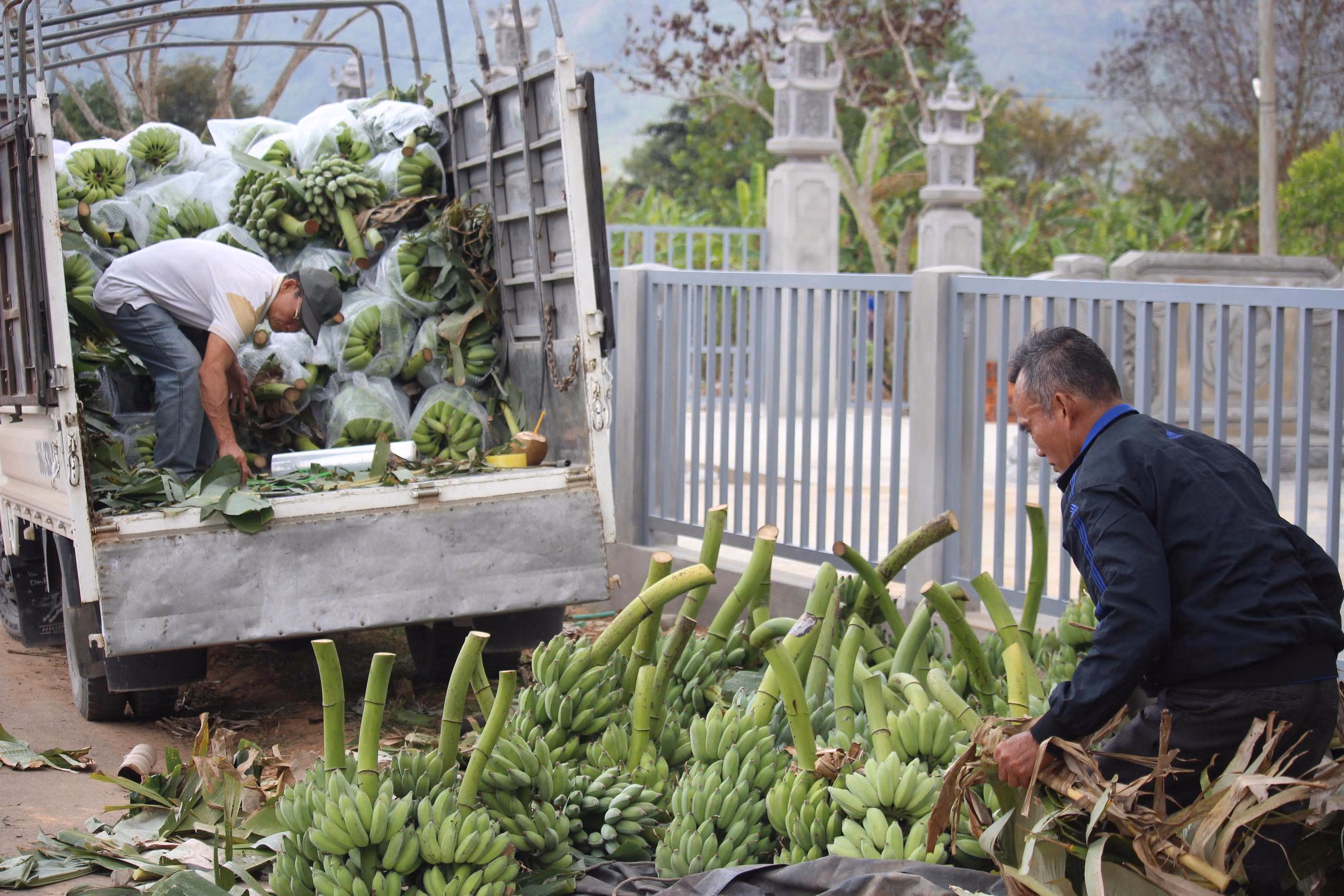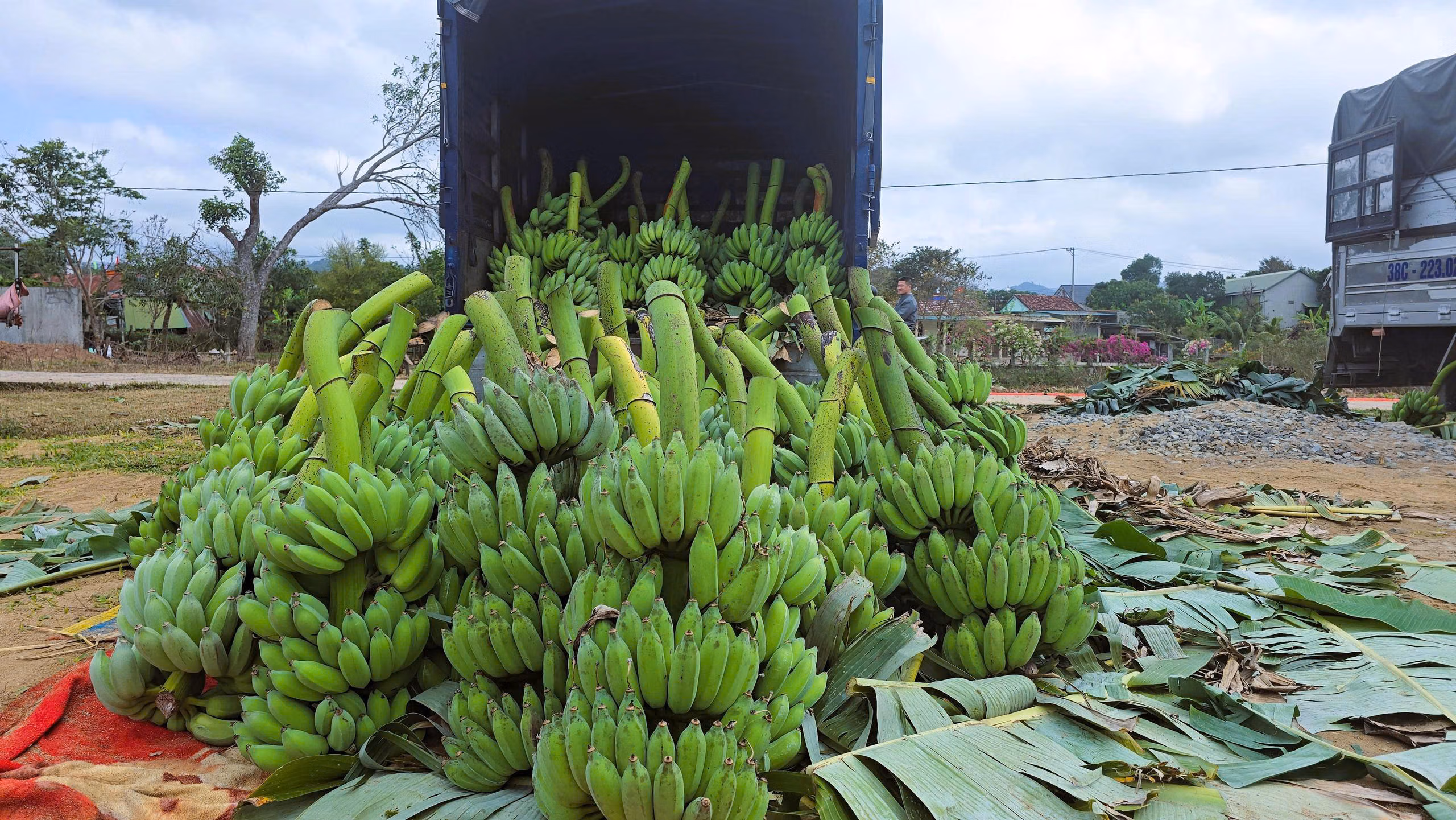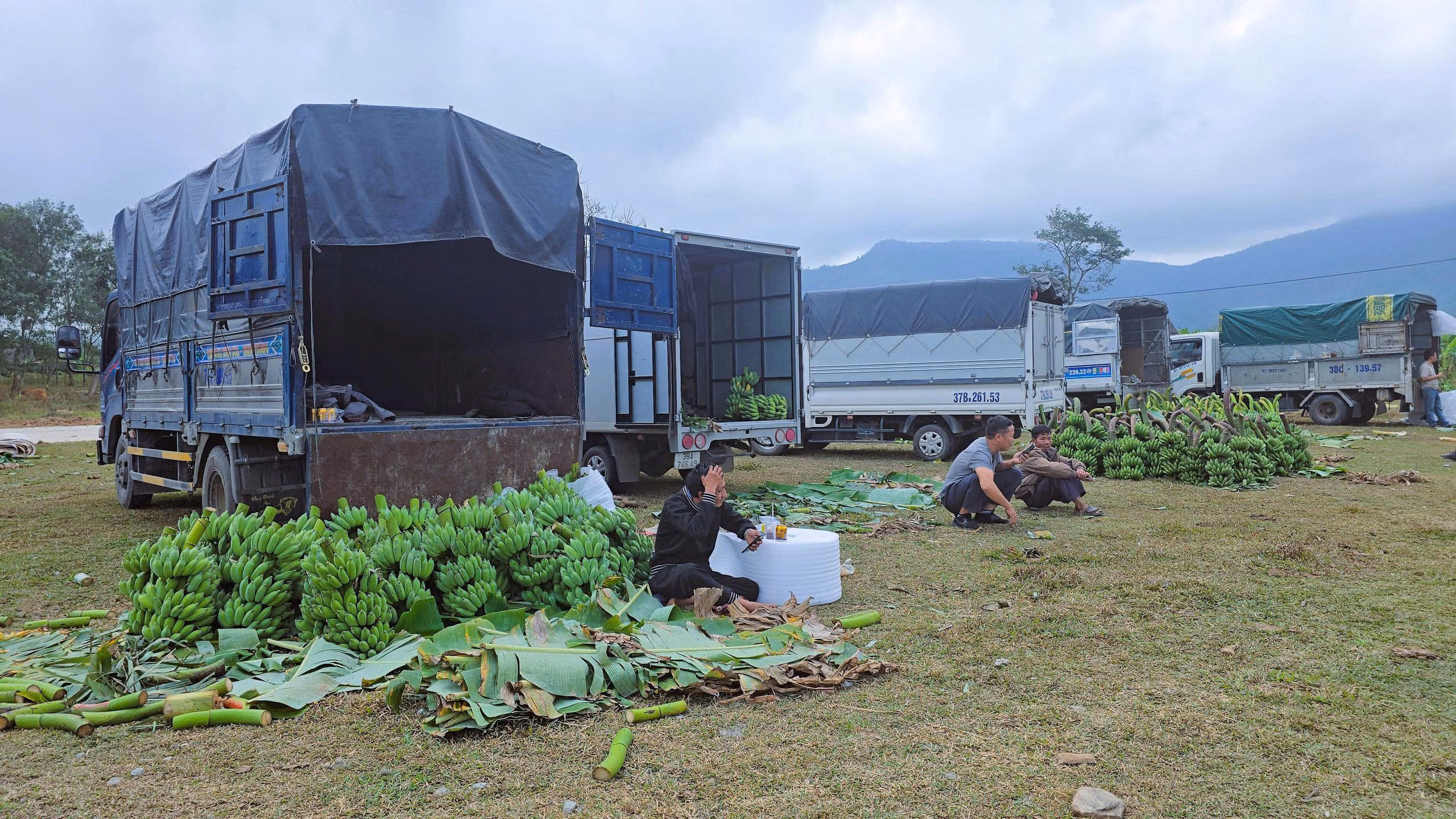 Sau khi thu mua, chuối được đưa lên xe tải và tiếp tục được chuyển đến các tỉnh thành như: Nghệ An, Hà Tĩnh, Huế… tiêu thụ. Ảnh: DL.