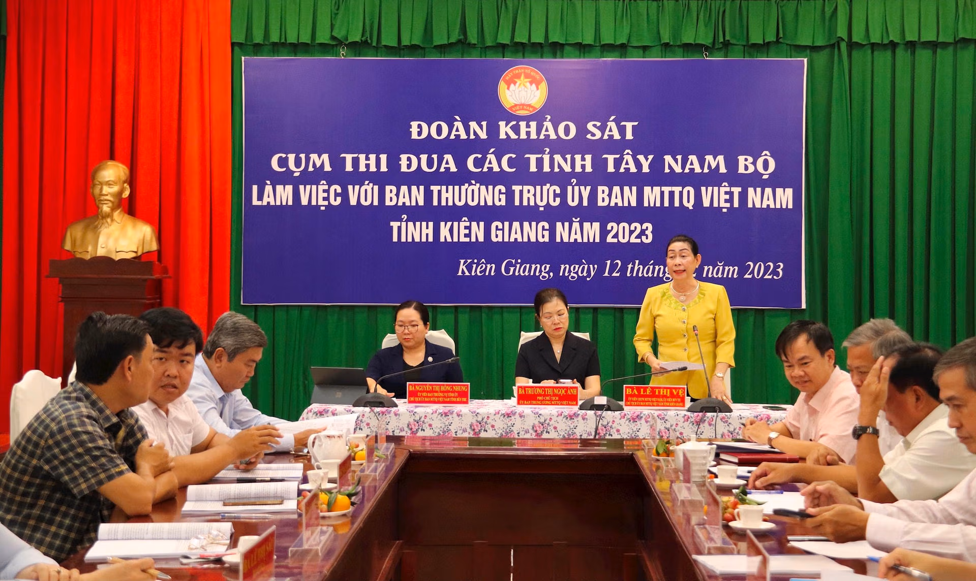 Chiều 12/12, Phó Chủ tịch UBTƯ MTTQ Việt Nam Trương Thị Ngọc Ánh cùng Đoàn công tác Ủy ban Trung ương MTTQ Việt Nam và Cụm thi đua các tỉnh Tây Nam Bộ khảo sát công tác Mặt trận tại tỉnh Kiên Giang.