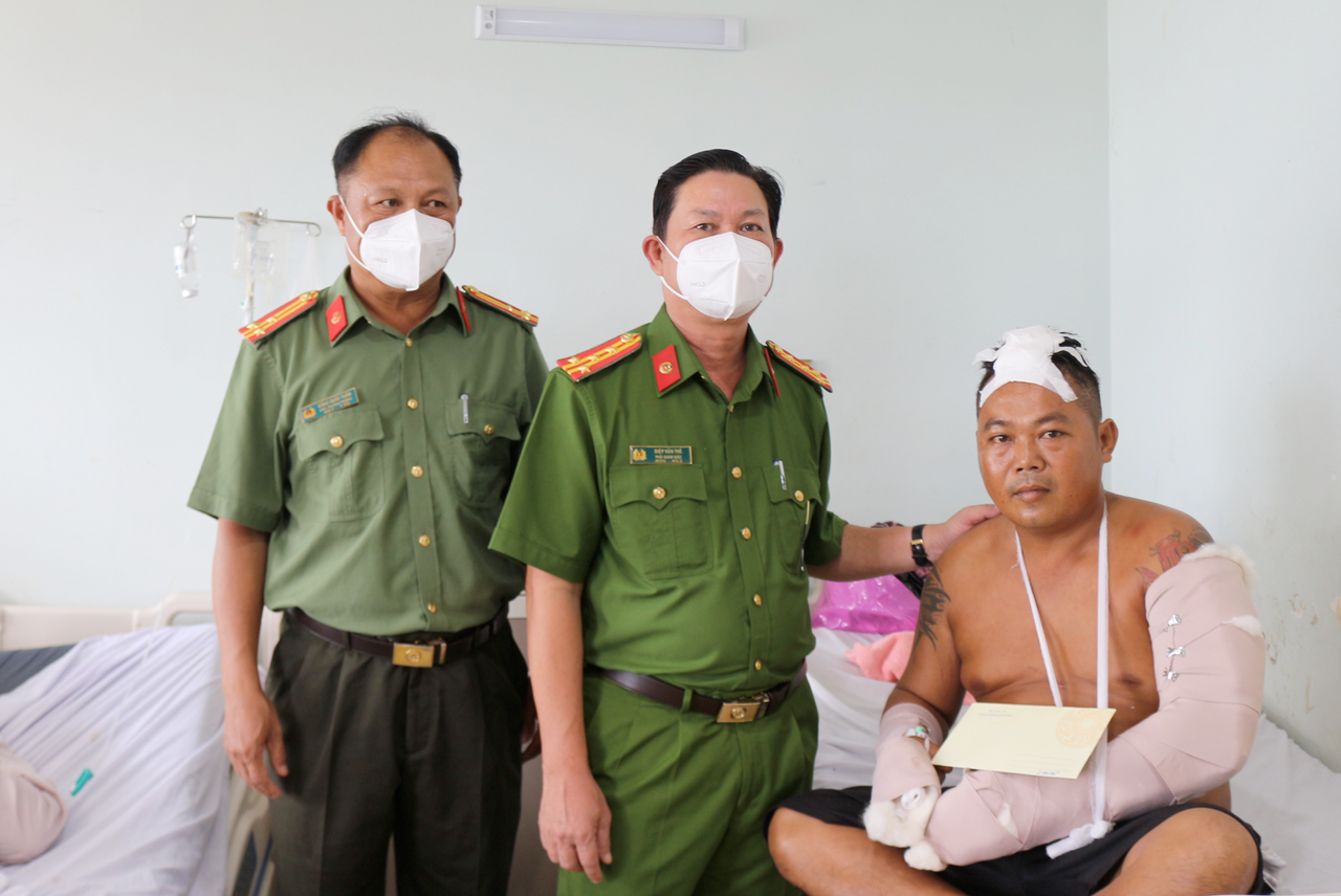 Liên quan đến vụ việc trên, chiều 28/5, Đoàn công tác của Công an tỉnh Kiên Giang do Đại tá Diệp Văn Thế, Phó Giám đốc Công an tỉnh làm trưởng đoàn đã đến thăm hỏi động viên Trung tá Nguyễn Văn Phòng, ông Cao Thế Nhiên và ông Phạm Hoài Ân...
