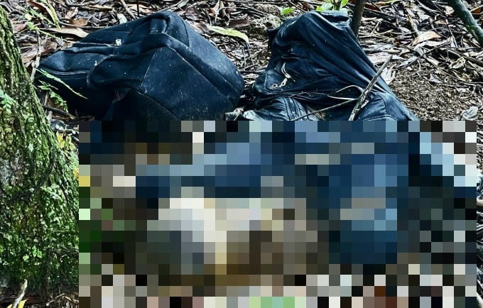 Thời điểm được phát hiện, thi thể nạn nhân nằm cạnh gốc keo, bên cạnh là một ba lô màu đen, áo da và quần đen. Do nạn nhân không có giấy tờ tùy thân nên chưa thể xác định được danh tính cụ thể.