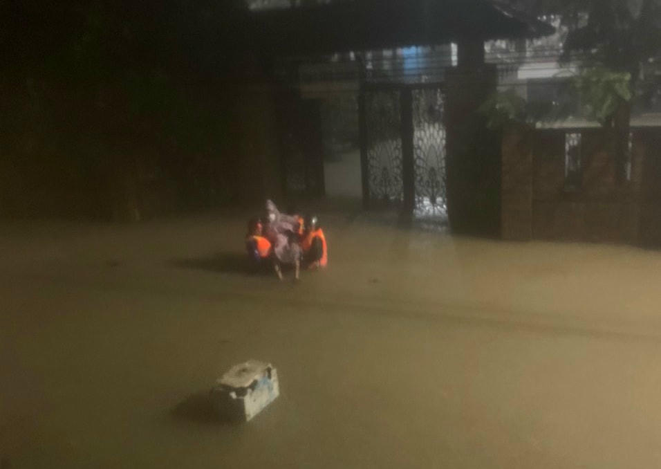 Lực lượng chức năng thị xã Hương Thuỷ (tỉnh Thừa Thiên - Huế) kịp thời đưa người đàn ông bị suy tim đi cấp cứu trong đêm mưa lũ.