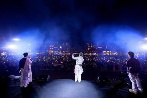 Tại miền Bắc, tối ngày 31/12, biển người đã đổ về Quảng trường K-Town - Vinhomes Ocean Park 2, quẩy hết mình trong bữa tiệc đa sắc màu văn hóa mang tên “The Glamorous Countdown 2025”. Dàn nghệ sĩ nổi tiếng gồm Vũ Cát Tường, DALAB, Trần Ngọc Ánh và bộ đôi DJ Gaztik đưa khán giả qua từng miền cảm xúc, từ giai điệu ngọt ngào về tình yêu, thanh xuân rực rỡ tới những bản cover đầy nội lực, remix, mash-up sôi động.
