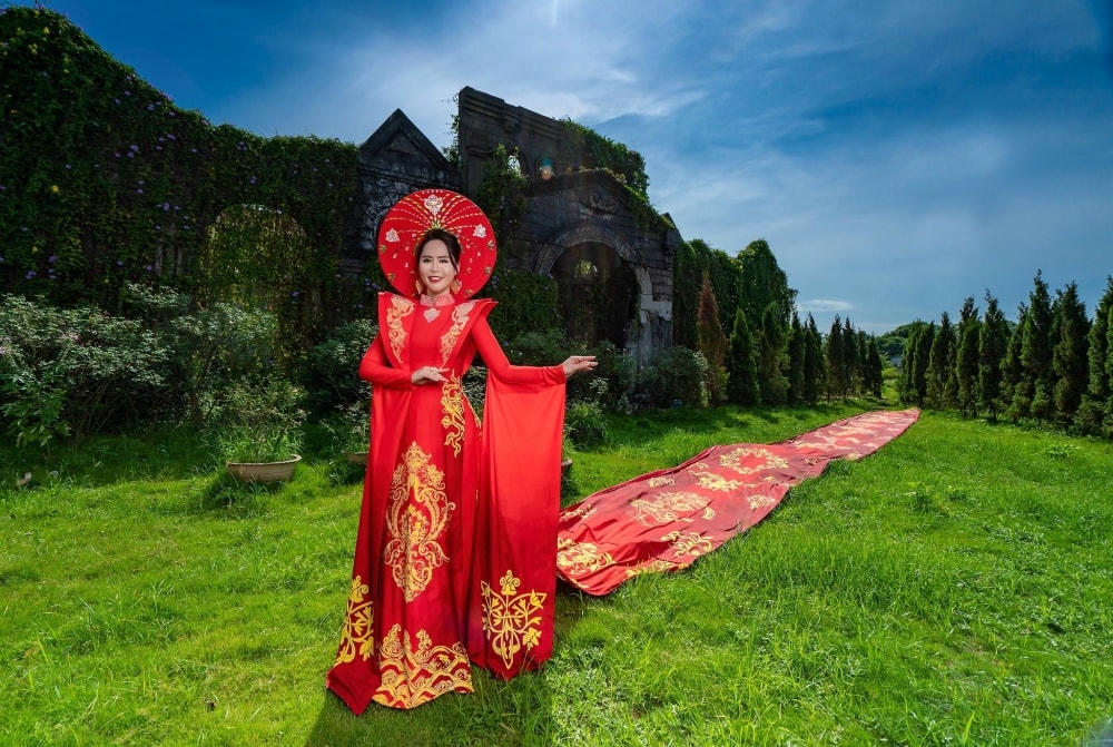 Hay như trước đó, vào tháng 4 vừa qua, chiếc áo dài "Non sông gấm vóc" dài 220,6m nặng gần 250kg đã xác lập kỷ lục chiếc áo dài đính kết thủ công, giới thiệu và quảng bá các danh lam thắng cảnh nổi tiếng của Việt Nam có kích thước dài nhất.