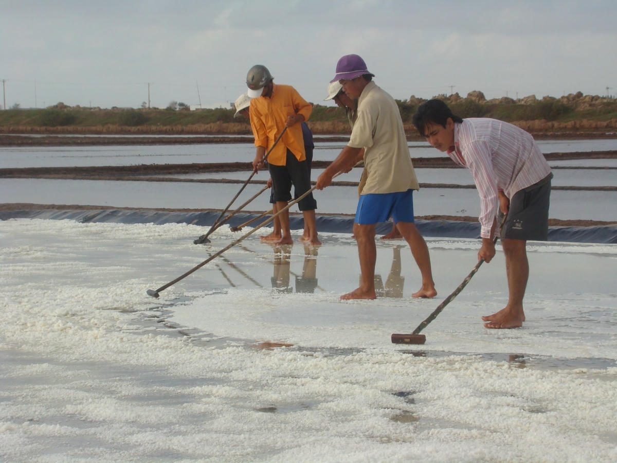 Cứ nghĩ cái nghề này đơn giản “lấy nước lã vã nên hồ”, chỉ cần bơm nước biển vào ruộng, đợi nắng lên, nước bốc hơi, muối kết tinh là lấy bán… Nhưng thực tế, anh Lợi bảo, không đơn giản như thế. Cả ngày phải phơi mặt dưới cái nắng chói chang, rát bỏng, mồ hôi ướt đầm lưng, bàn tay loang lổ những vết trầy xước. Hạt muối thu được có vị mặn mòi của biển và cả vị mặn đắng của mồ hôi diêm dân.