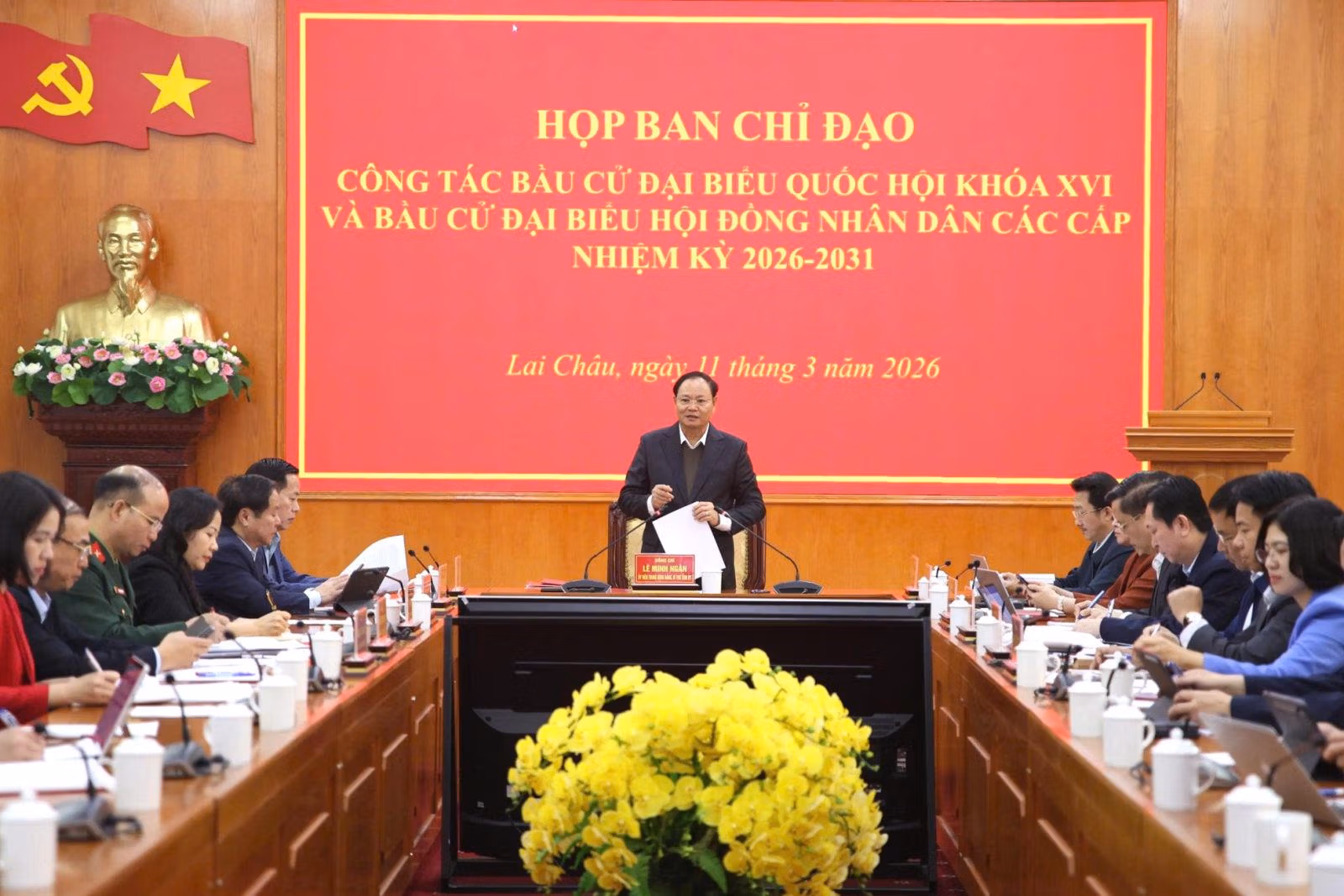 Ngày 11/3, Ban Chỉ đạo công tác bầu cử đại biểu Quốc hội khóa XVI và đại biểu HĐND các cấp nhiệm kỳ 2026-2031 tỉnh Lai Châu đã tổ chức họp bằng hình thức trực tiếp tại điểm cầu tỉnh và kết nối trực tuyến đến điểm cầu cấp xã để nghe báo cáo kết quả chỉ đạo, tình hình triển khai công tác bầu cử.