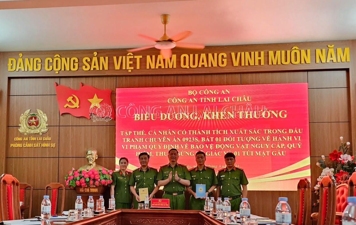 Ngày 11/9, Đại tá Phạm Hải Đăng, Phó Giám đốc – Thủ trưởng cơ quan CSĐT Công an tỉnh Lai Châu đã tới gặp mặt, biểu dương và thưởng nóng cho Phòng Cảnh sát hình sự (CSHS) do có thành tích phá chuyên án 0923S, bắt giữ 1 đối tượng mua bán sừng tê giác, mật gấu để kiếm lời.